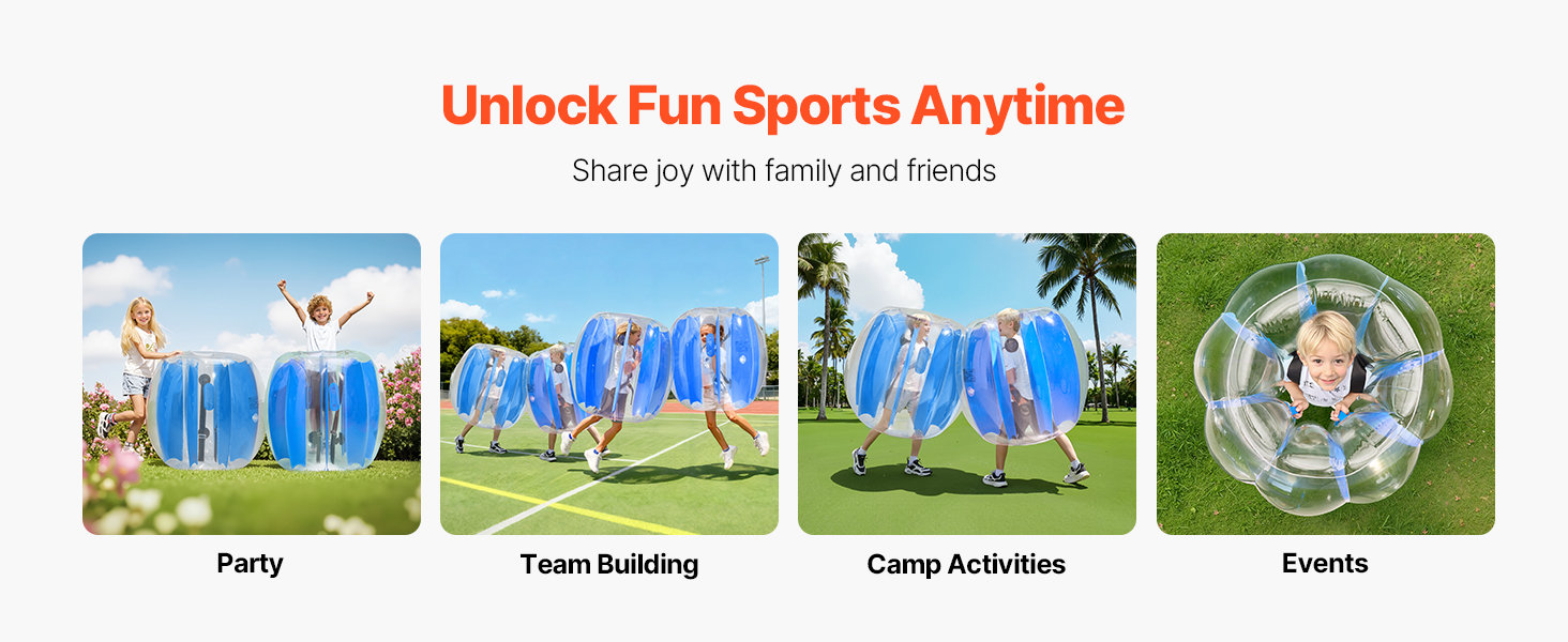Naše telové sumo lopty sú ideálne na zábavu pre jednotlivca alebo viacerých hráčov, vďaka čomu si môžete užívať slobodu pri skákaní, hádzaní, kotúľaní a narážaní. Zabavte sa s rodinou a priateľmi a zároveň si užívajte radosť z fyzickej aktivity.
