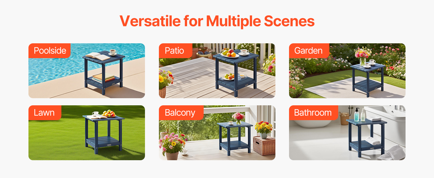 Vonkajší koncový stolík je vhodný k bazénu, na terasu, do záhrady alebo do akéhokoľvek vonkajšieho prostredia. Skvele sa hodí aj na použitie v interiéri, napríklad v kúpeľni, kde zaberá minimum miesta.