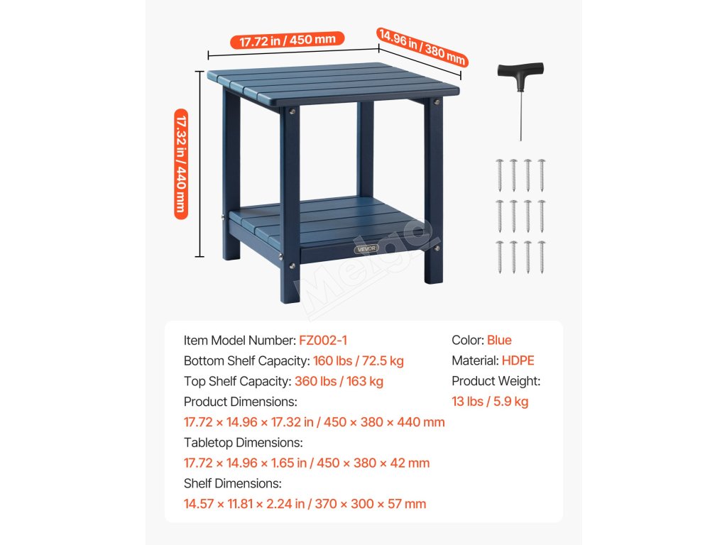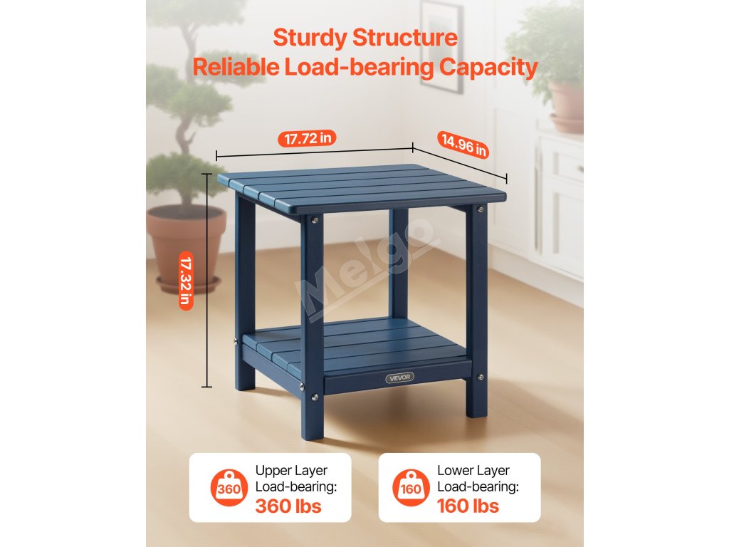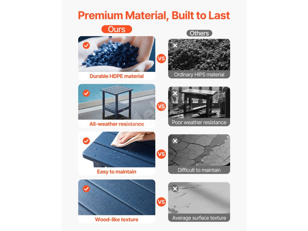 Tento vonkajší príručný stolík, vyrobený z vysokokvalitného materiálu HDPE a pevnej konštrukcie H-rámu, ponúka vynikajúcu pevnosť. Vrchná doska unesie až 360 kg a spodná polica až 160 kg.