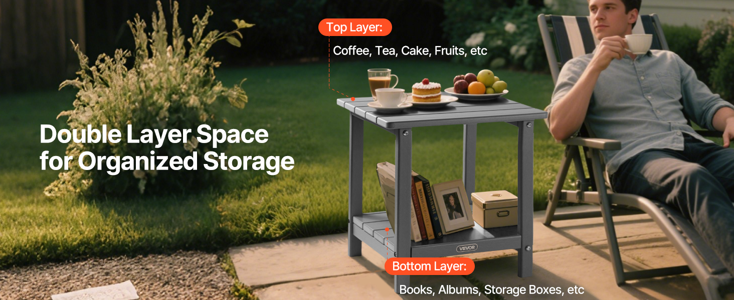 Vďaka dvojvrstvovej konštrukcii sa na tomto koncovom stolíku na terasu dajú ľahko usporiadať nápoje, občerstvenie alebo akékoľvek iné potrebné veci. Vychutnajte si prehľadnú dosku stola a zároveň majte pod ňou ďalší úložný priestor.