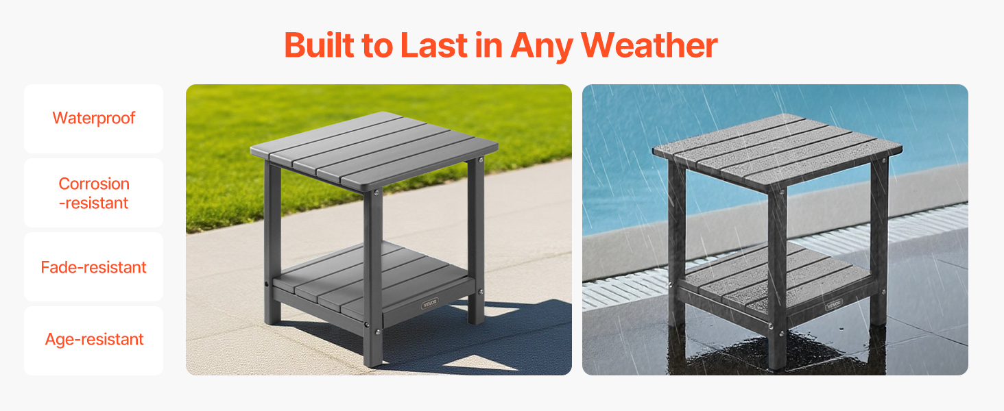 Tento príručný stolík na terasu je skonštruovaný tak, aby odolal prírodným živlom. Je vodotesný, odolný voči vlhkosti a farebne stály. Dvojvrstvová konštrukcia ponúka dostatok úložného priestoru, vďaka čomu udrží váš priestor čistý a uprataný.
