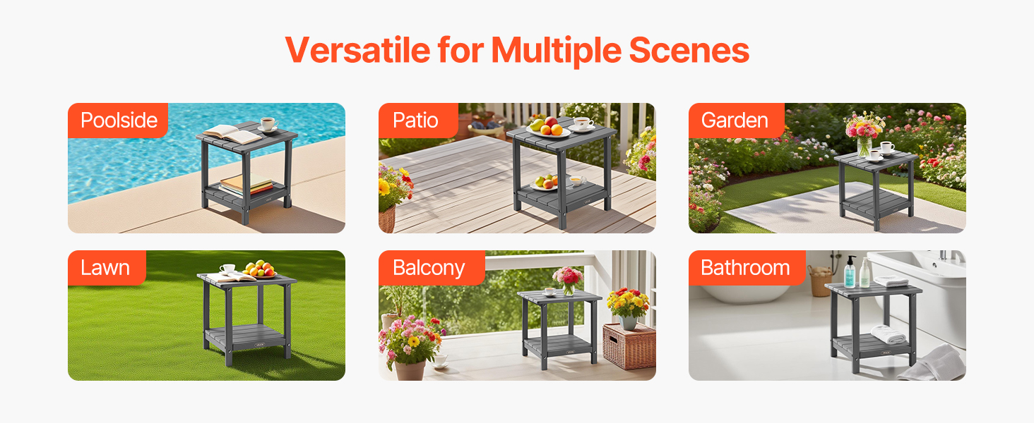 Vonkajší koncový stolík je vhodný k bazénu, na terasu, do záhrady alebo do akéhokoľvek vonkajšieho prostredia. Skvele sa hodí aj na použitie v interiéri, napríklad v kúpeľni, kde zaberá minimum miesta.