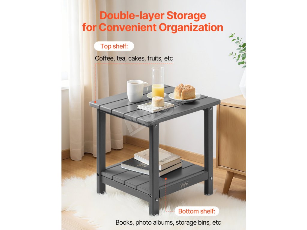 Vďaka dvojvrstvovej konštrukcii sa na tomto koncovom stolíku na terasu dajú ľahko usporiadať nápoje, občerstvenie alebo akékoľvek iné potrebné veci. Vychutnajte si prehľadnú dosku stola a zároveň majte pod ňou ďalší úložný priestor.