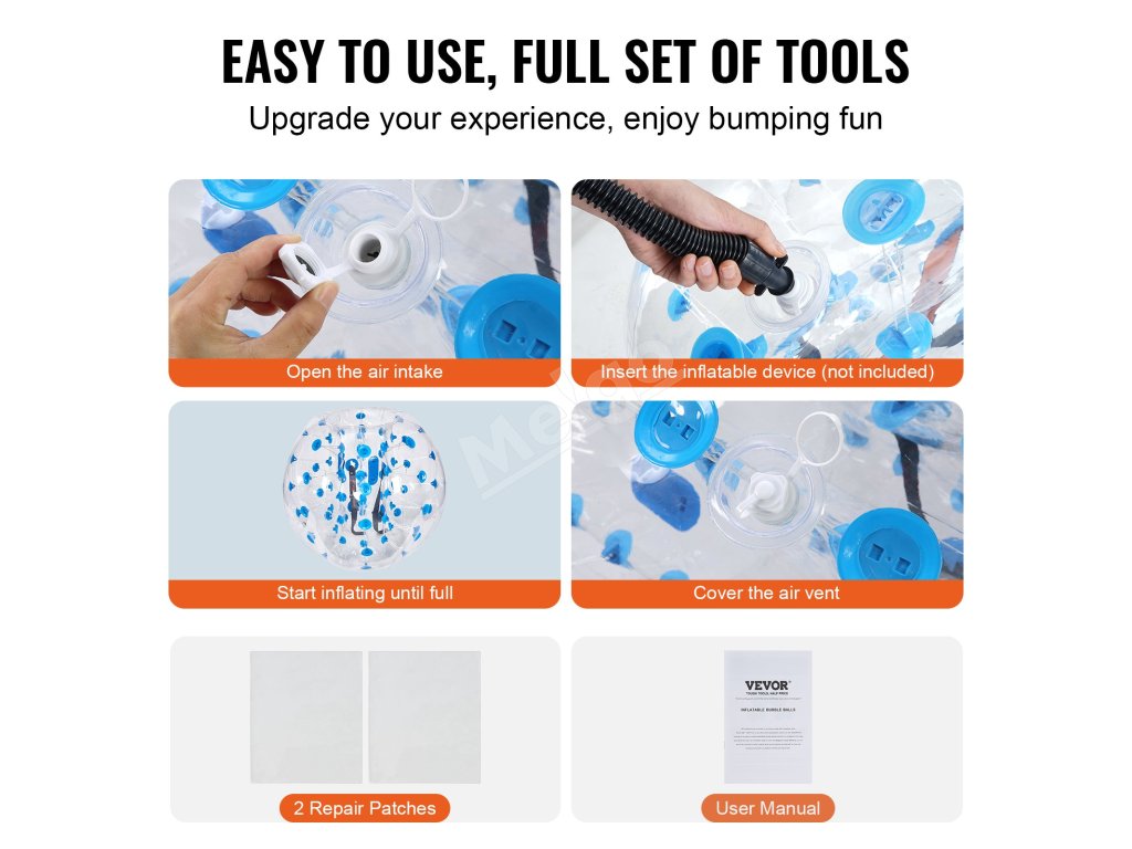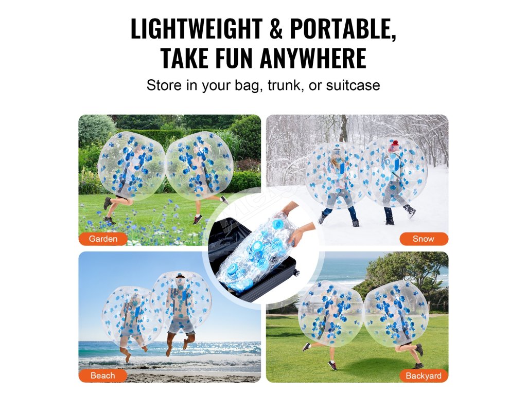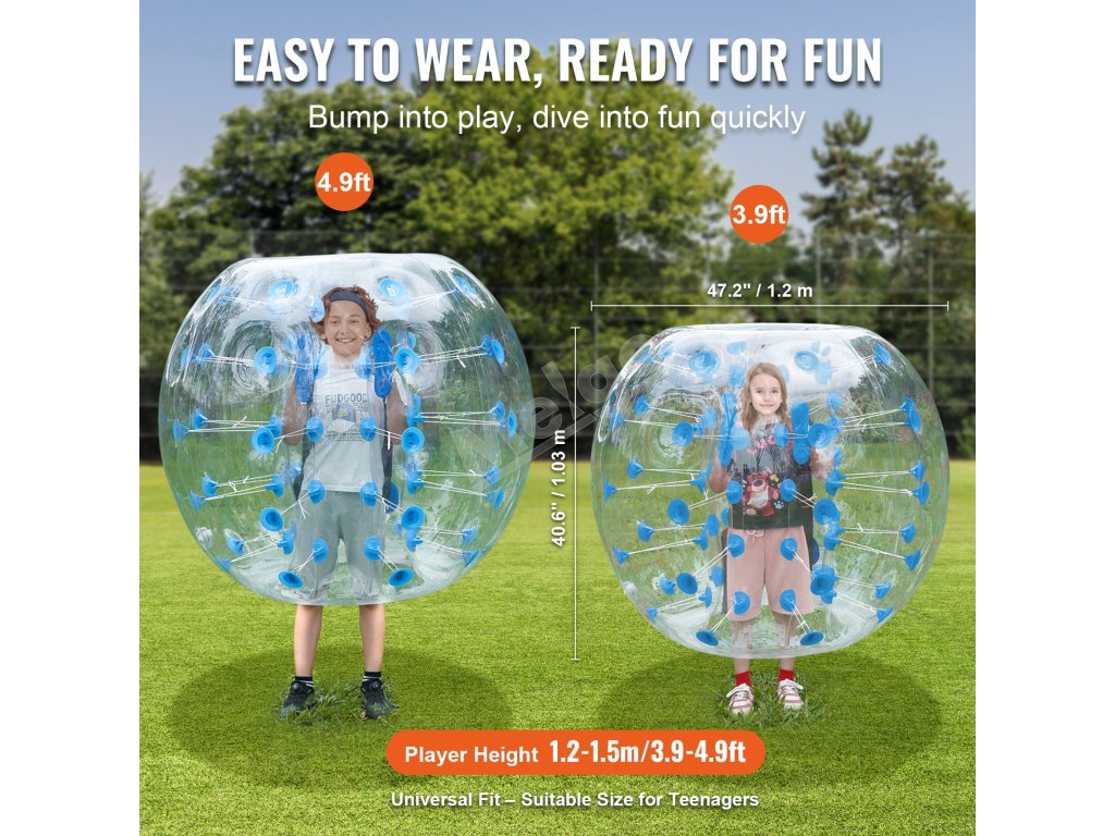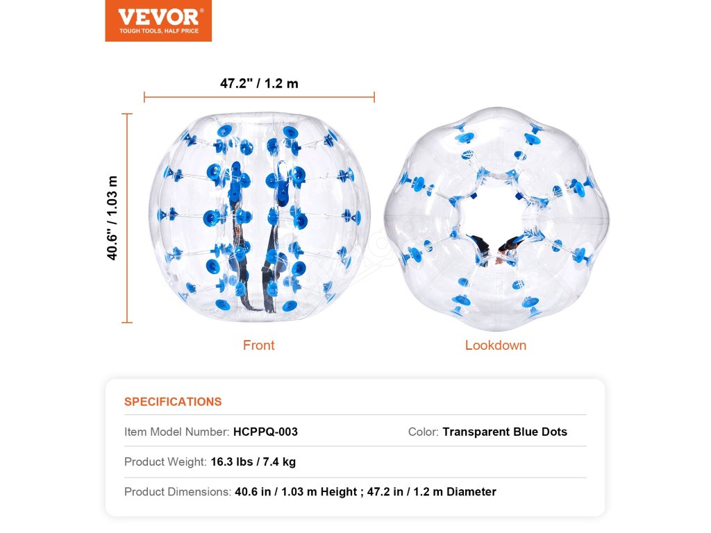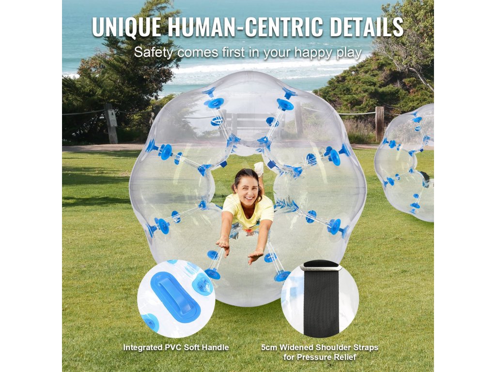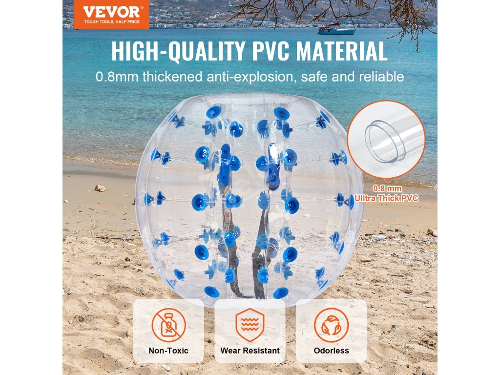 Rozpútajte dokonalú zábavu s nafukovacími loptami VEVOR. Naše nárazníkové lopty s vonkajším priemerom 4FT, vyrobené z 0,8 mm hrubého PVC odolného proti výbuchu, sú navrhnuté pre maximálnu odolnosť a bezpečnosť. Pripravte sa na nárazové vzrušenie a vytvárajte nezabudnuteľné momenty s bublinkovými futbalovými loptami VEVOR!