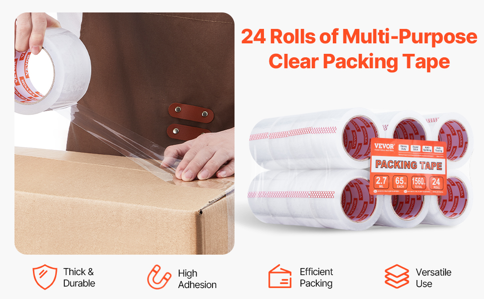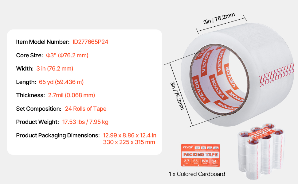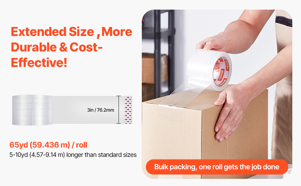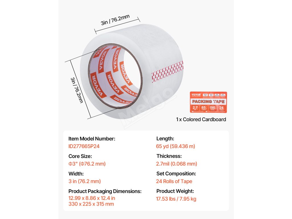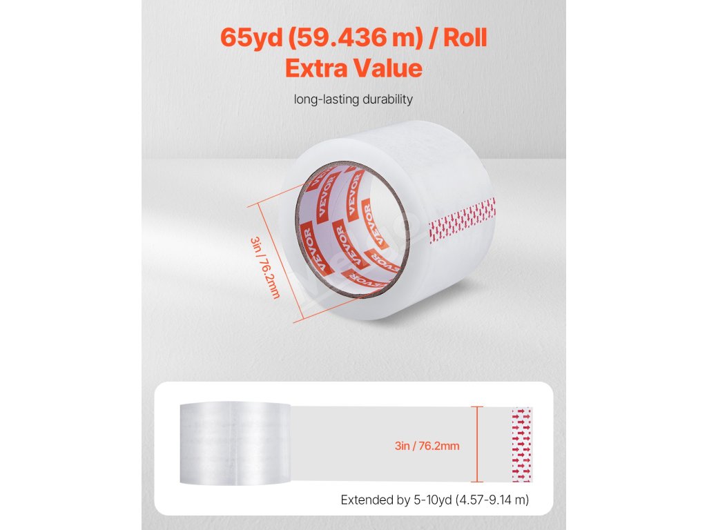 Naša cenovo výhodná súprava priehľadnej baliacej pásky obsahuje 24 kotúčov pásky s 3-palcovým jadrom. Každá rolka má dĺžku 65yd / 59,436 m - 5-10yd / 4,57-9,14 m dlhšiu ako štandardné možnosti. To znamená viac pásky, menej časté výmeny a ekonomickejšie riešenie pre všetky vaše baliace projekty.