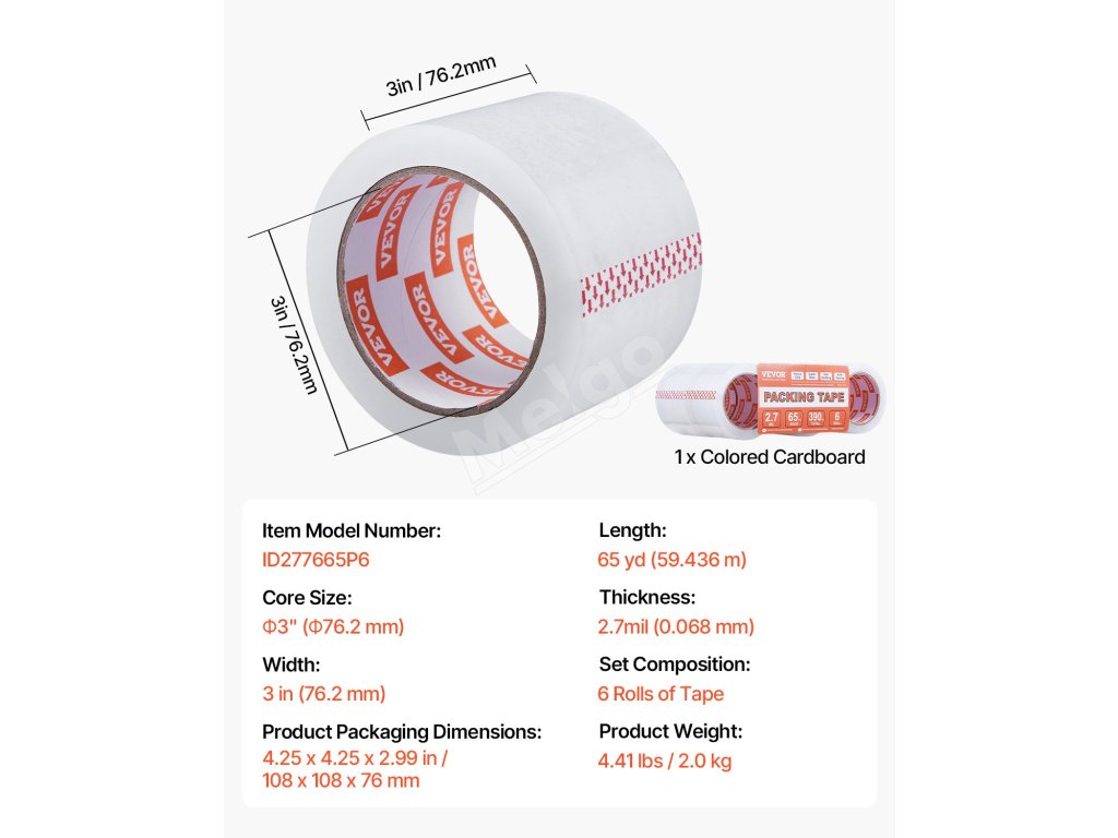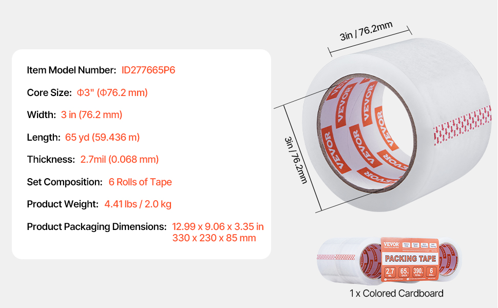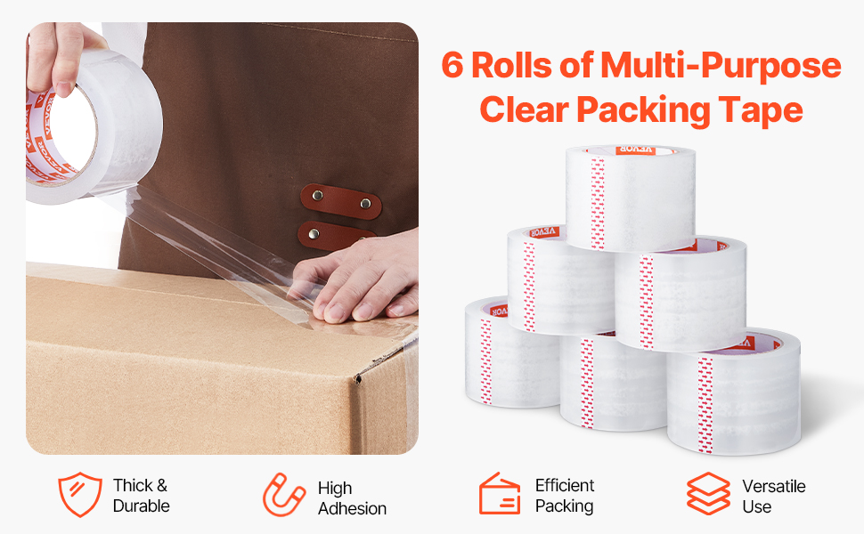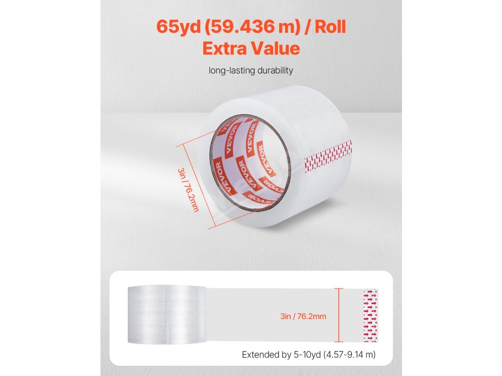 Naša cenovo výhodná súprava priehľadnej baliacej pásky obsahuje 6 kotúčov pásky s 3-palcovým jadrom. Každá rolka má dĺžku 65yd / 59,436 m - 5-10yd / 4,57-9,14 m dlhšiu ako štandardné možnosti. To znamená viac pásky, menej časté výmeny a ekonomickejšie riešenie pre všetky vaše baliace projekty.