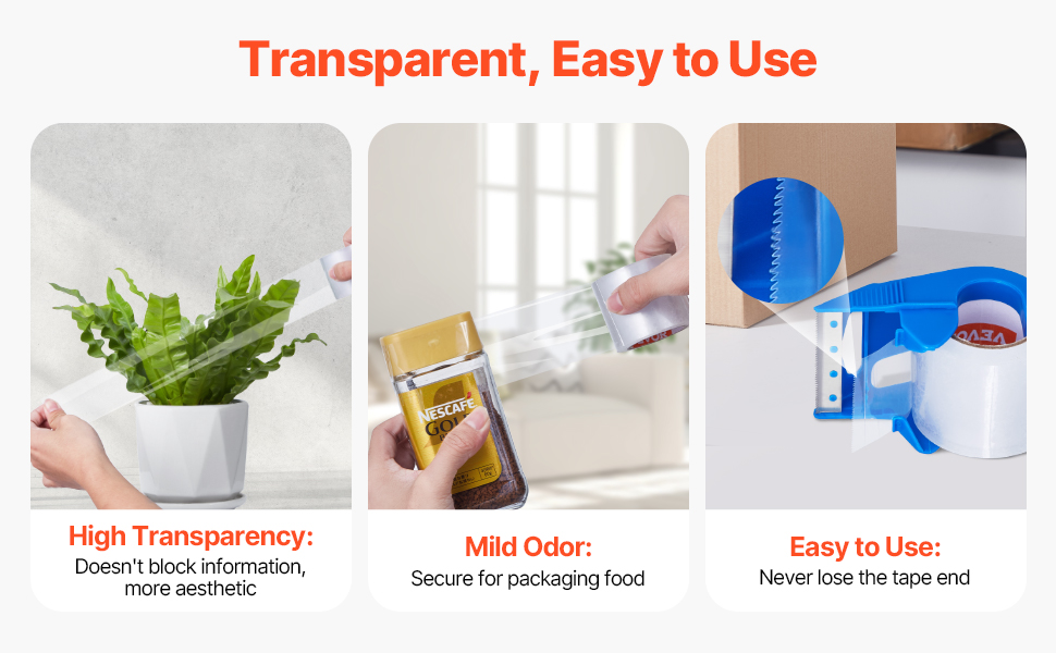 Naša odolná baliaca páska poskytuje vynikajúcu priehľadnosť, vďaka čomu zostanú vaše štítky a informácie viditeľné. Je bezpečná a bez zápachu pre príjemnejšie balenie. V spojení s dávkovačom zefektívňuje balenie bez obáv, že pri začatí balenia stratíte koniec pásky.