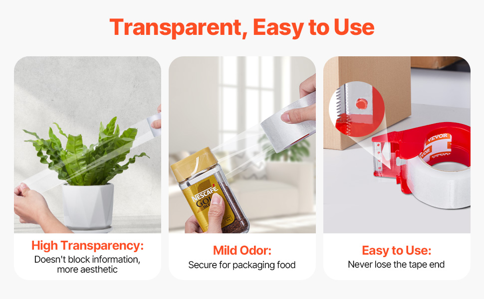 Naša odolná baliaca páska poskytuje vynikajúcu priehľadnosť, vďaka čomu zostanú vaše štítky a informácie viditeľné. Je bezpečná a bez zápachu pre príjemnejšie balenie. V spojení s dávkovačom zefektívňuje balenie bez obáv, že pri začatí balenia stratíte koniec pásky.