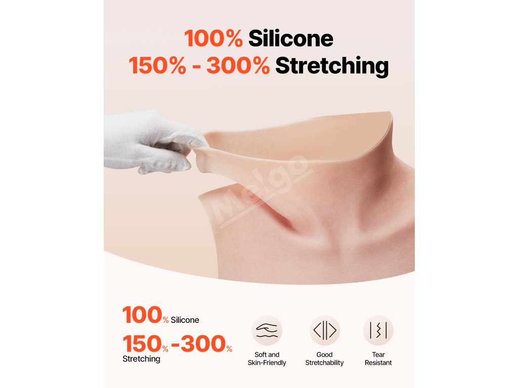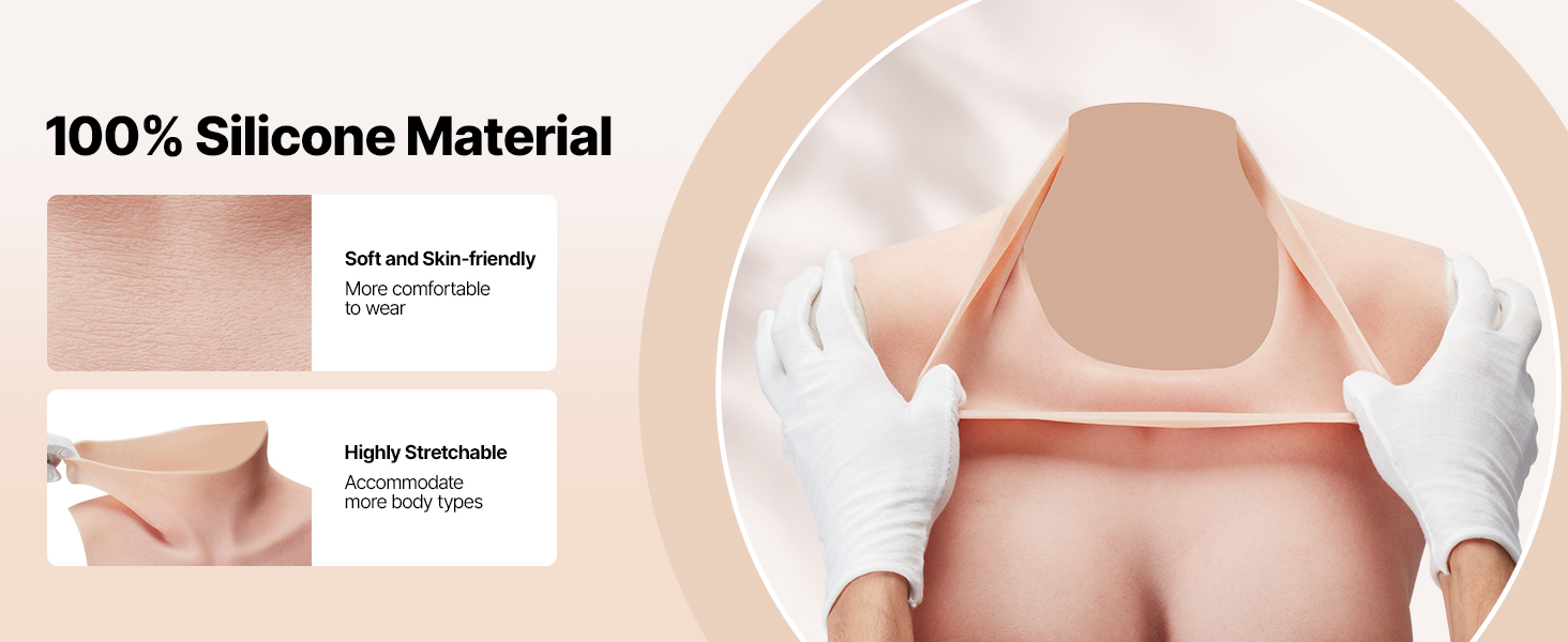 Tento prsný štítok zo 100 % silikónu je mäkký a príjemný na pokožku, čím poskytuje jedinečný zážitok z nosenia. Jeho vynikajúca elasticita umožňuje prsnému plátu prispôsobiť sa rôznym typom postavy, ponúka pohodlnejšie nosenie a predvádza prirodzený, realistický vzhľad.
