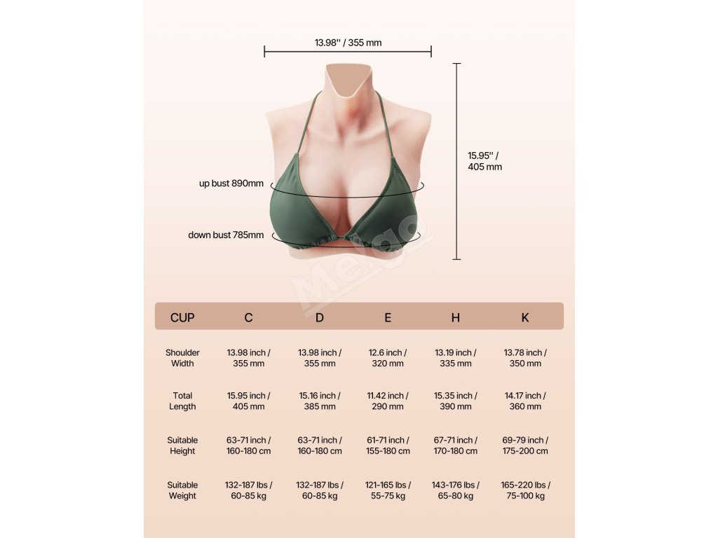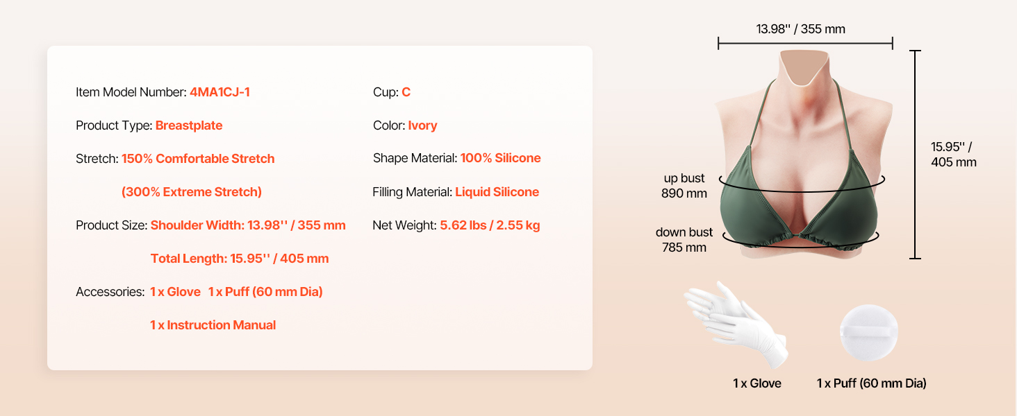 Náš silikónový prsný košíček C-Cup kombinuje pohodlie a realizmus. Je vyrobený zo 100 % silikónu, ponúka mäkký, na dotyk príjemný pocit a veľkú rozťažnosť, ideálny pre nadšencov cosplay, drag queens a crossdresserov. Zvýšte si sebavedomie a vzhľad s naším výnimočným prsným štítom.