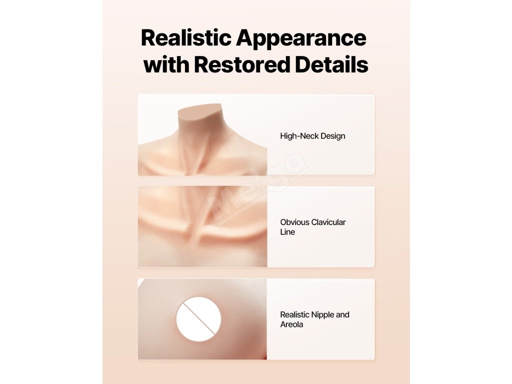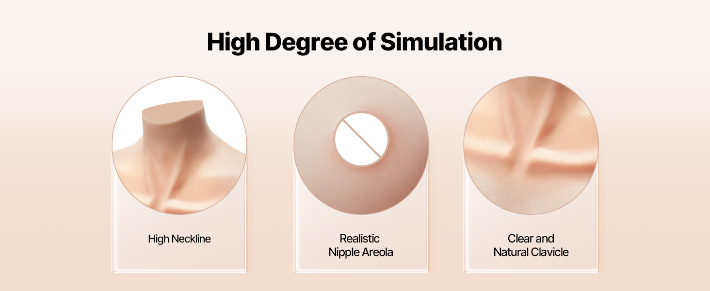 Vysoký stupeň simulácie dizajnu, ktorý dokonale kopíruje prirodzenú krásu. Jemná štruktúra pokožky prináša realistický dotyk a vizuálny efekt; vzpriamený tvar prsníkov zvýrazňuje elegantné krivky; jasné a prirodzené línie kľúčnych kostí umocňujú celkový realistický vzhľad.