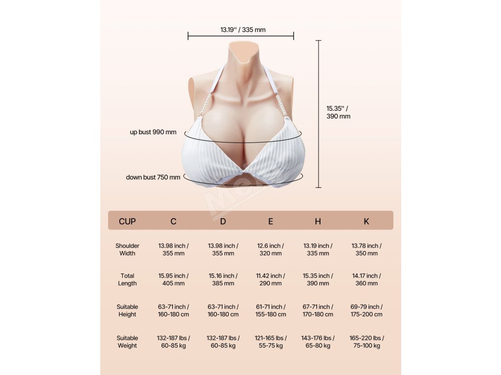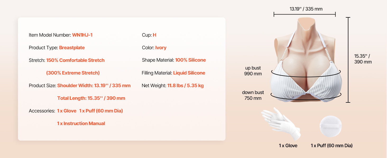 Náš silikónový prsný košíček H-Cup kombinuje pohodlie a realizmus. Je vyrobený zo 100 % silikónu, ponúka mäkký, na dotyk príjemný pocit a veľkú rozťažnosť, ideálny pre nadšencov cosplay, drag queens a crossdresserov. Zvýšte si sebavedomie a vzhľad s naším výnimočným prsným štítom.