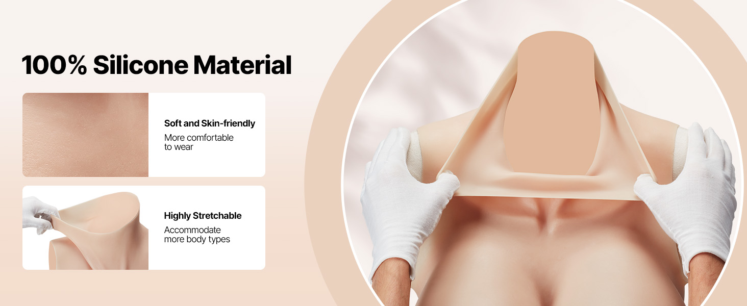 Tento prsný štítok zo 100 % silikónu je mäkký a príjemný na pokožku, čím poskytuje jedinečný zážitok z nosenia. Jeho vynikajúca elasticita umožňuje prsnému plátu prispôsobiť sa rôznym typom postavy, ponúka pohodlnejšie nosenie a predvádza prirodzený, realistický vzhľad.