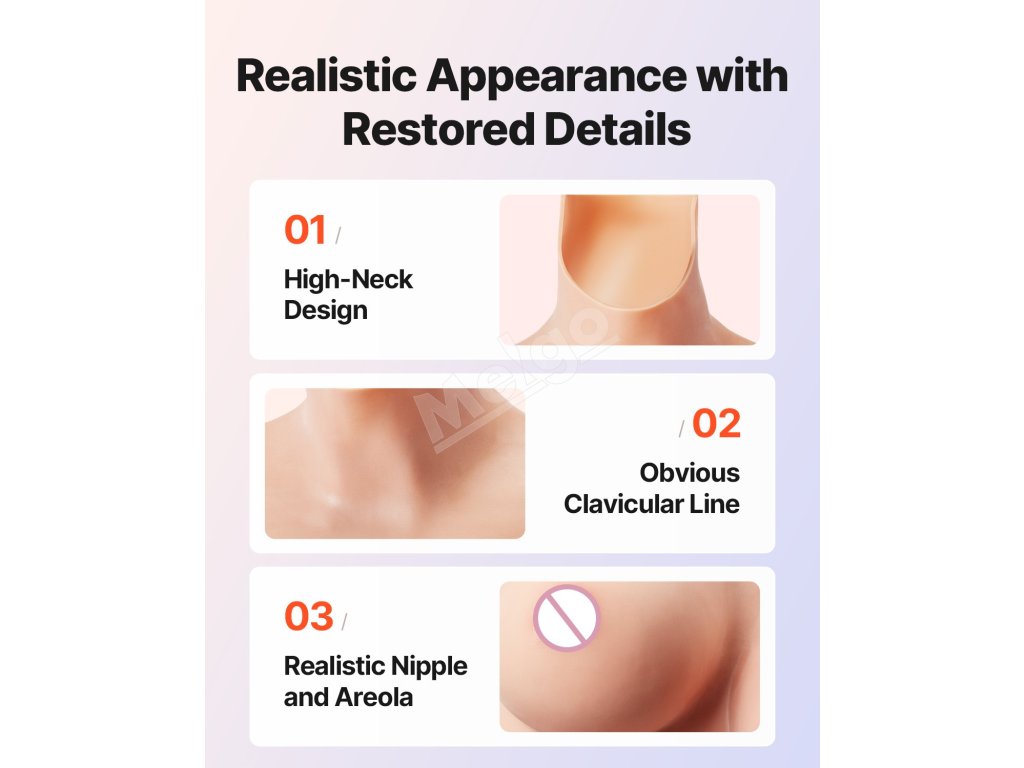 Toto 100 % silikónové body je mäkké a príjemné na pokožku, čo poskytuje jedinečný zážitok z nosenia. Jeho vynikajúca elasticita umožňuje, aby sa body prispôsobilo rôznym typom postavy, ponúka pohodlnejšie nosenie a predvádza prirodzený, realistický vzhľad.