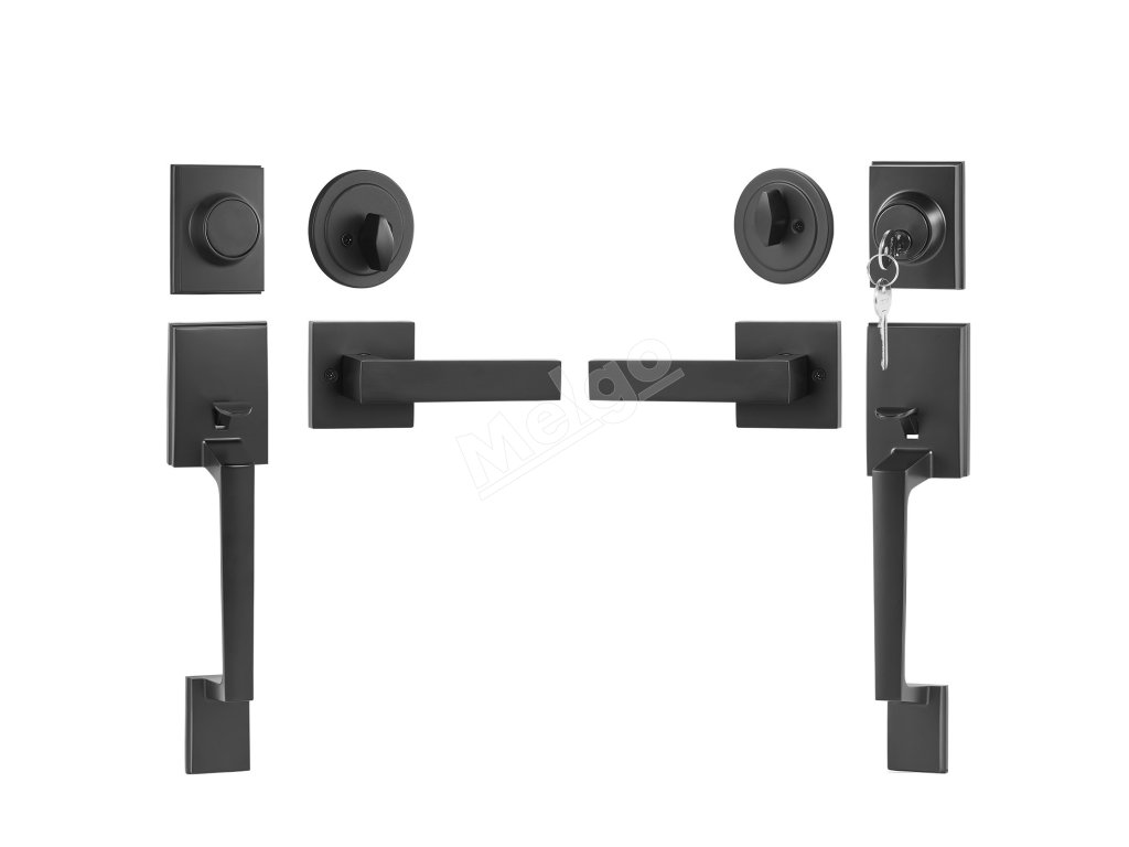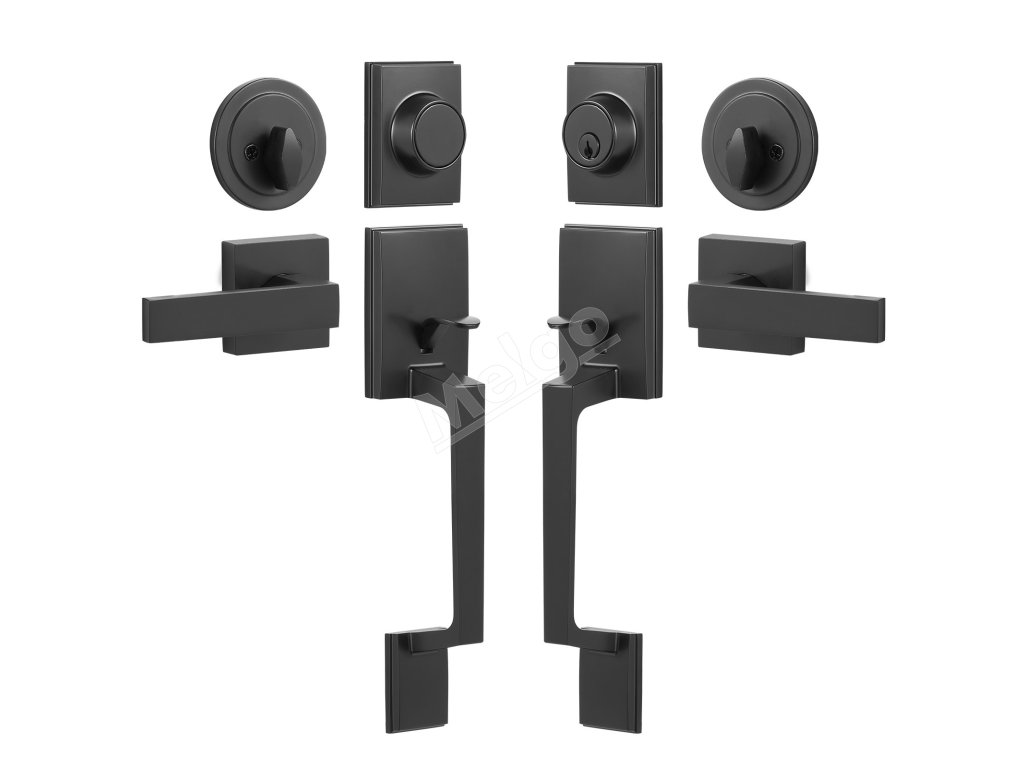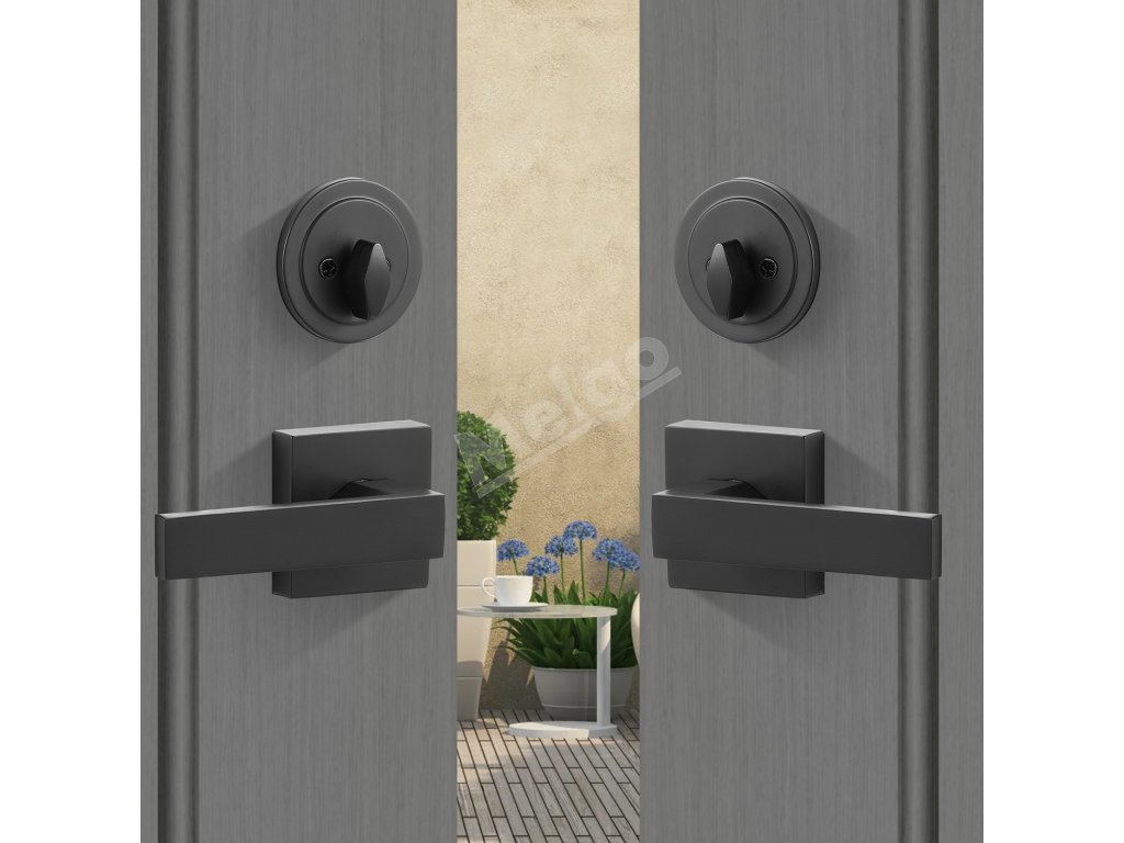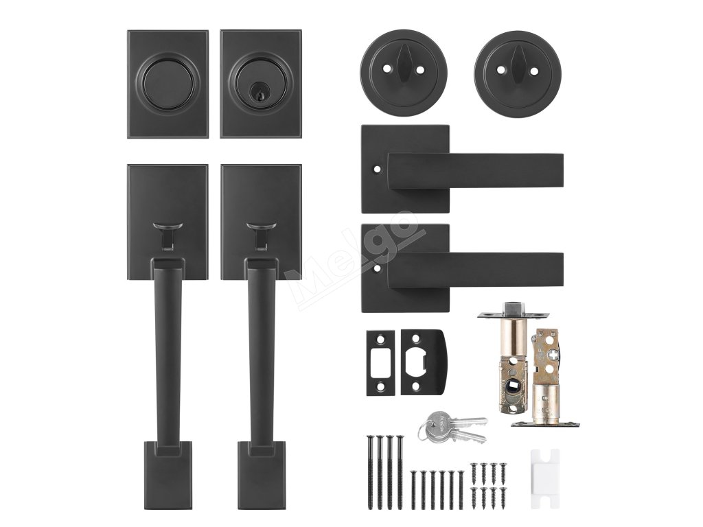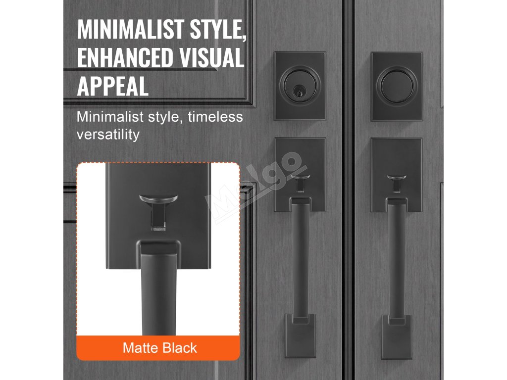 Súprava dvojitej kľučky na vchodové dvere obsahuje dve vysokokvalitné štvorcové kľučky, ktoré sú obojstranné pre ľavé alebo pravé dvere. Vonkajší zámok na kľúč a vnútorný bezpečnostný zámok zaručujú spoľahlivosť a bezpečnosť.