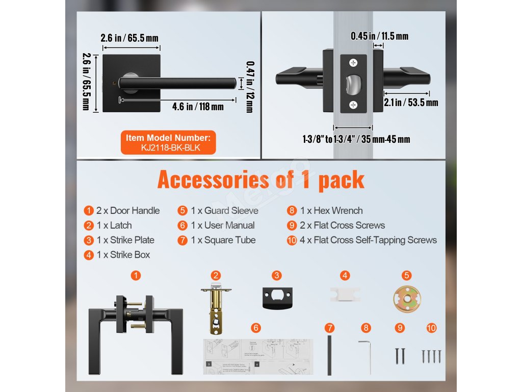 Naša čierna dverová páka je navrhnutá s funkciou uzamykania na ochranu vášho súkromia zvnútra. Dodáva sa s nastaviteľnou západkou s priemerom 2-3/8 palca alebo 2-3/4 palca, ktorá je vhodná pre dvere s hrúbkou od 1-3/8 palca do 1-3/4 palca. Kompatibilná s viac ako 95 % interiérových dverí.