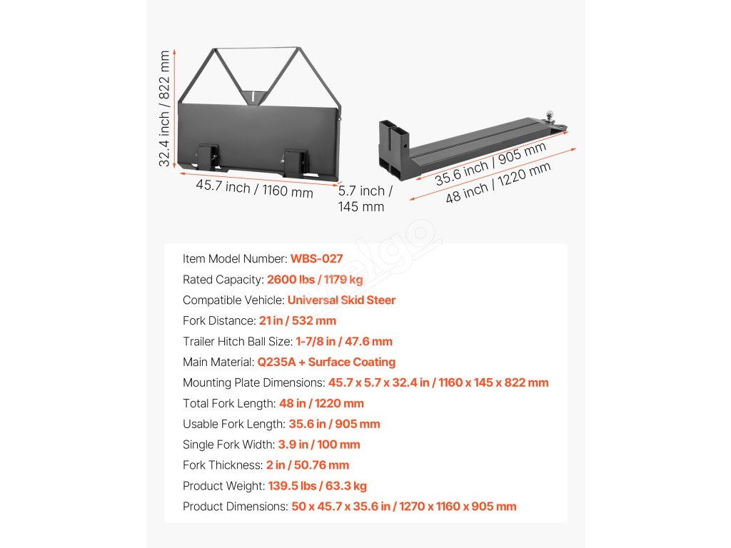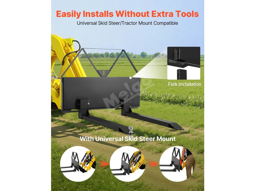 Naše ťažké oceľové vidlice pre šmykom riadené vozidlá majú nosnosť 2600 lbs a sú kompatibilné s väčšinou šmykom riadených vozidiel a traktorov. Ideálne na poľnohospodárske, záhradné a stavebné práce, premiestňovanie balíkov sena, stavebných materiálov a ďalšie.