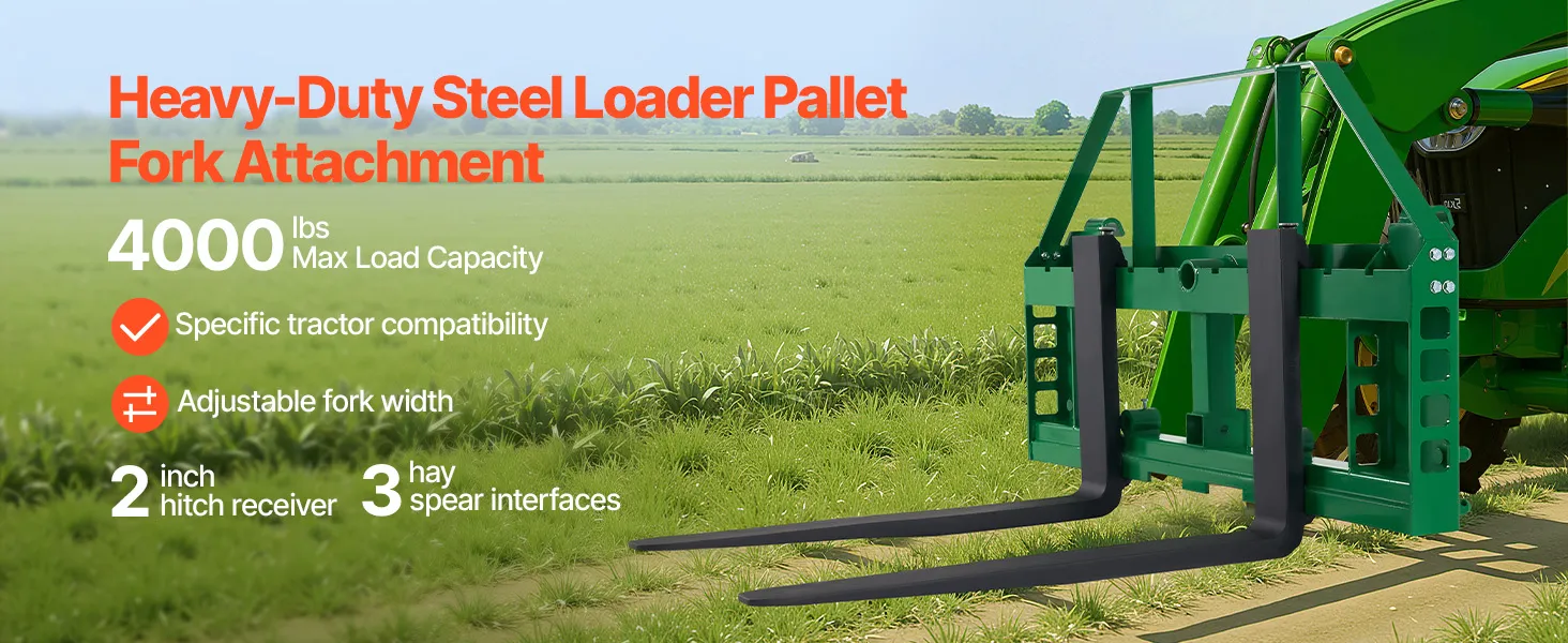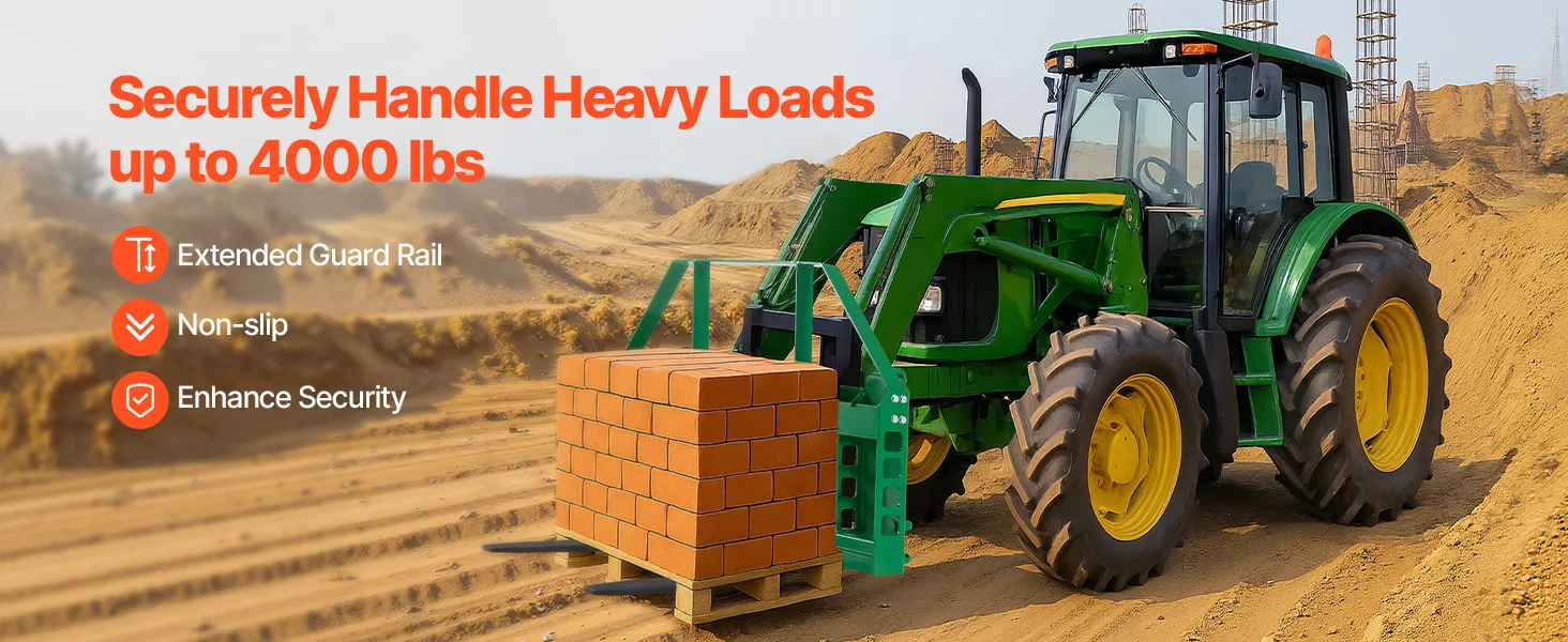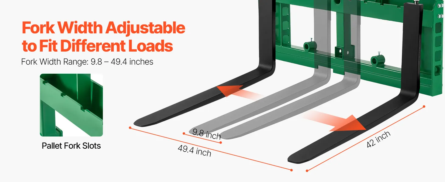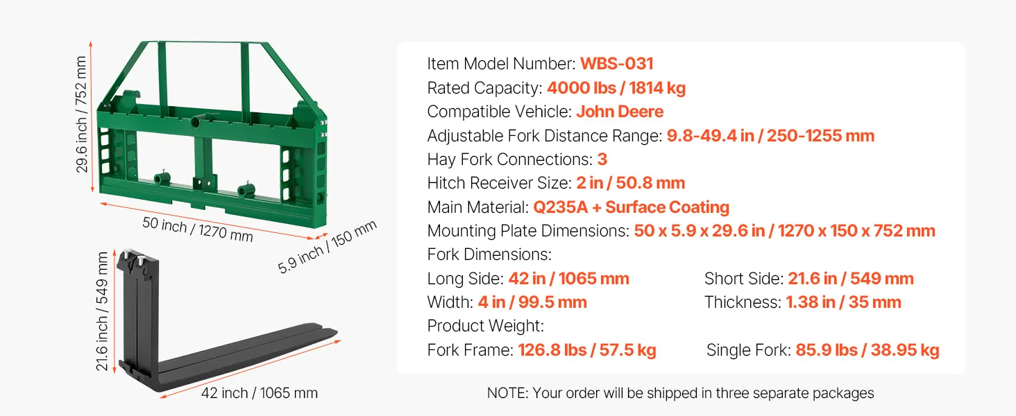 Naše ťažké oceľové vidlice pre šmykom riadené vozidlá majú nosnosť 4000 lbs a sú určené pre traktory John Deere. Ideálne na poľnohospodárske, záhradné a stavebné práce, premiestňovanie balíkov sena, stavebných materiálov a ďalšie.