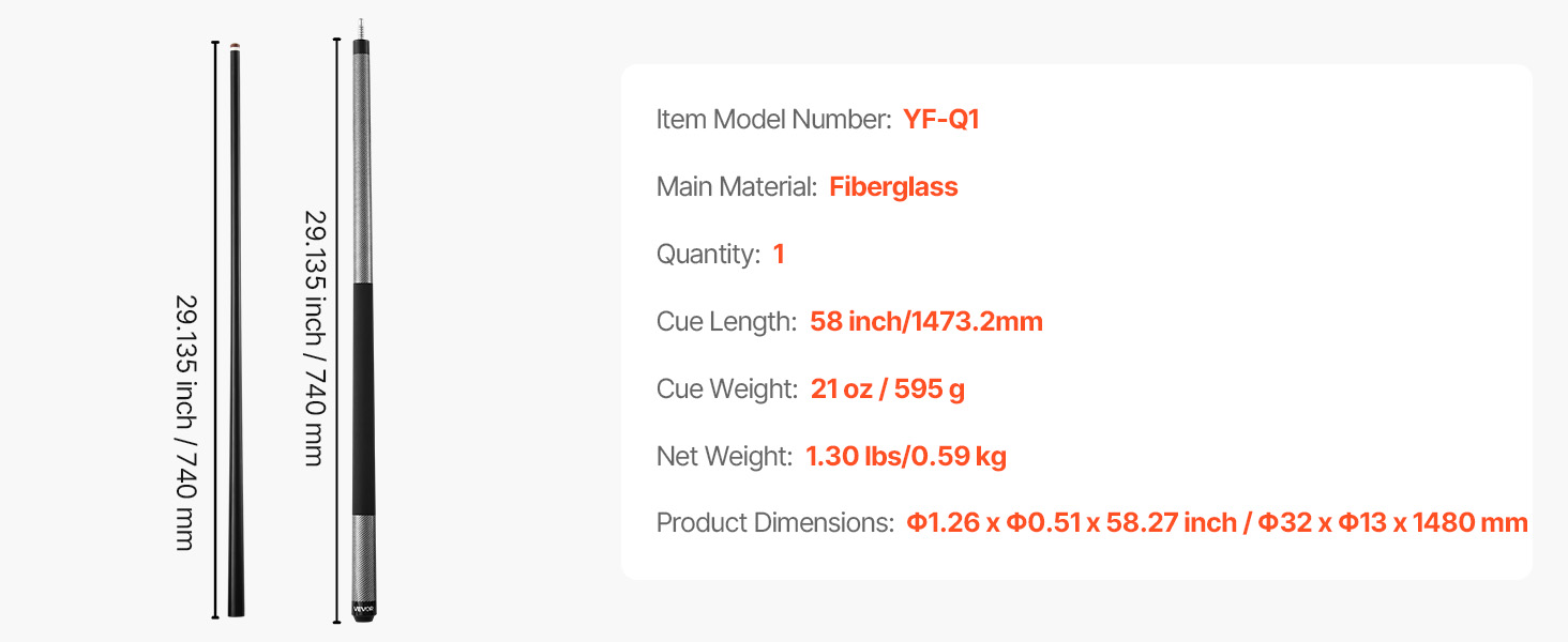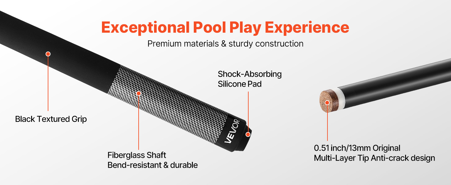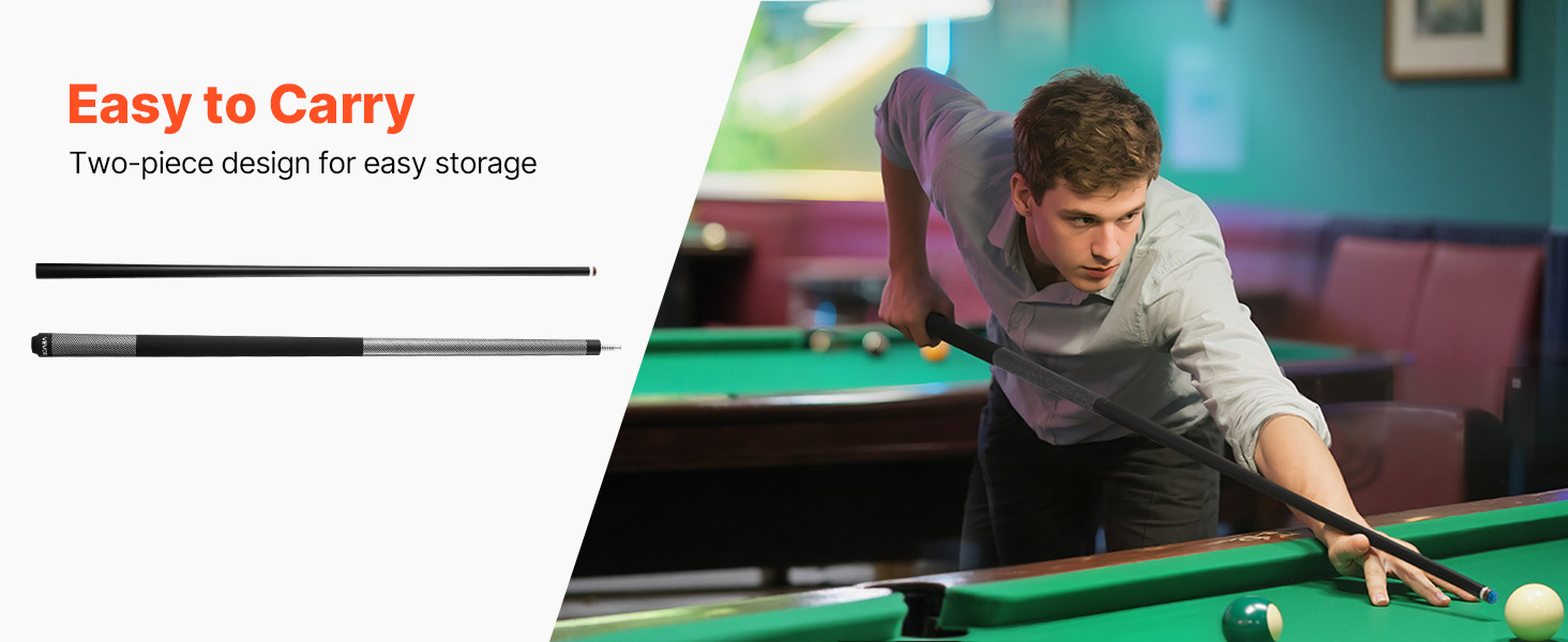 Naše biliardové tágo má dvojdielnu konštrukciu, vďaka ktorej sa ľahko skladuje a prenáša, keď sa nepoužíva. Odnímateľné časti šetria miesto a umožňujú jednoduchú prepravu do zábavnej miestnosti, čo z neho robí ideálnu voľbu pre hráčov na cestách.