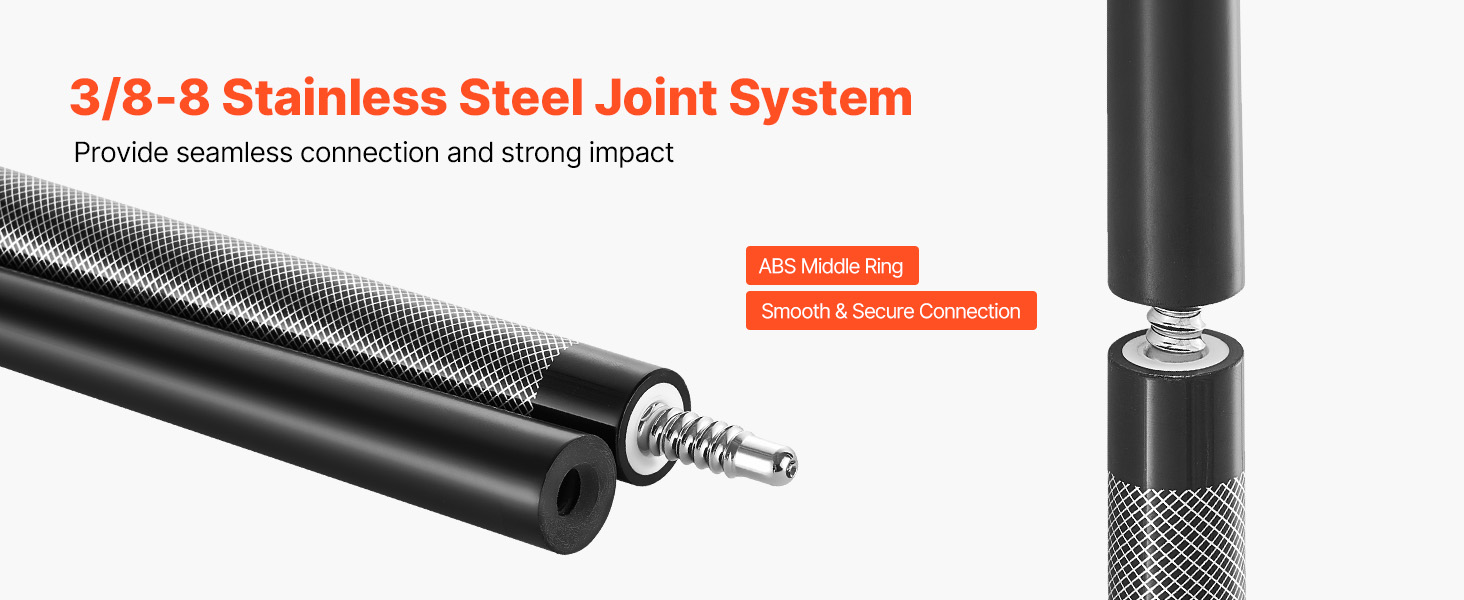 Kĺb z nehrdzavejúcej ocele 3/8-8 poskytuje bezproblémové spojenie, čím sa eliminuje akékoľvek viklanie pre stabilnejšie strely. Matná povrchová úprava ponúka pohodlný, protišmykový úchop, čím zvyšuje kontrolu a istotu pri každom údere v biliardovej sade tága.