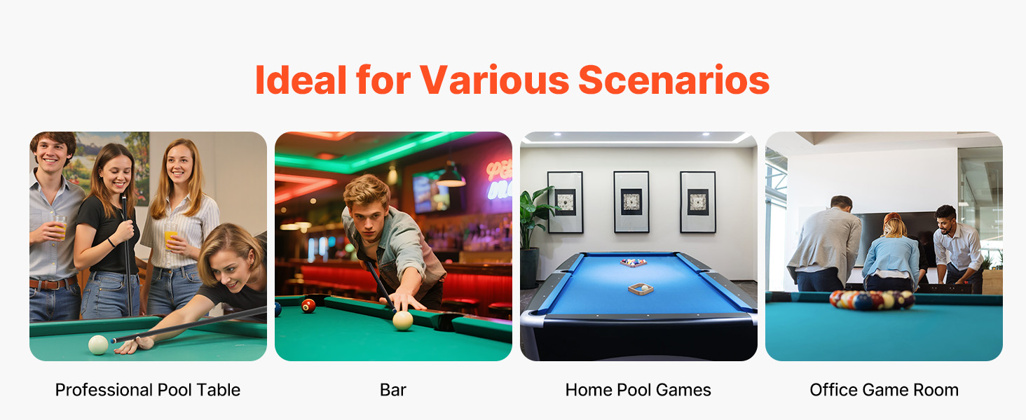 Toto biliardové tágo je vhodné do profesionálnych biliardových klubov, domácich herní, kancelárskych zábavných priestorov, barov a rekreačných miest. Či už ide o osobný tréning alebo súťažnú hru s priateľmi, je to spoľahlivý nástroj do každého prostredia, ktorý ponúka všestrannosť a výkon.