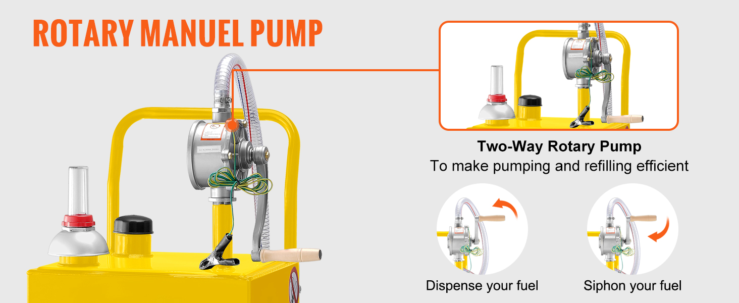 Účinné obojsmerné čerpadlo vydáva alebo odčerpáva palivo zmenou otáčania kľukovej rukoväte, čo vám umožňuje eliminovať preplnenie nádrží stiahnutím prebytočného benzínu alebo nafty späť do kade.