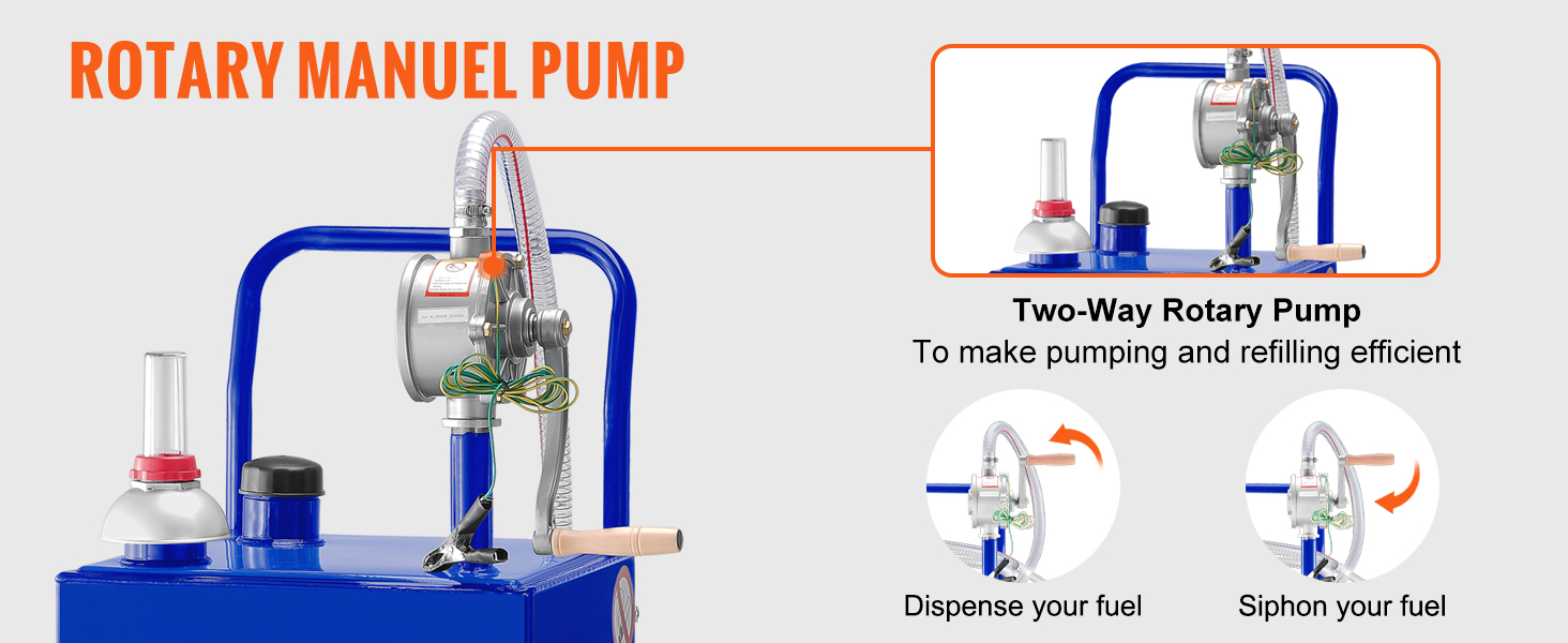 Účinné obojsmerné čerpadlo vydáva alebo odčerpáva palivo zmenou otáčania kľukovej rukoväte, čo vám umožňuje eliminovať preplnenie nádrží stiahnutím prebytočného benzínu alebo nafty späť do kade.