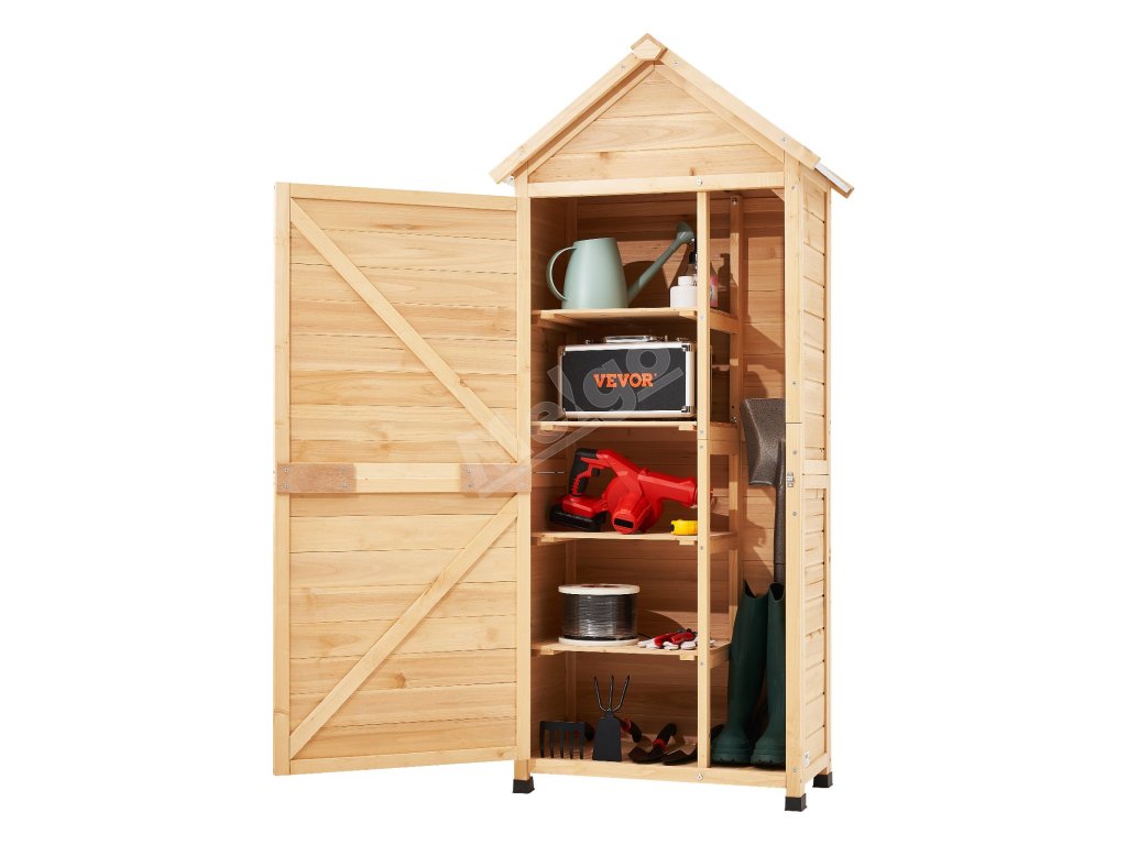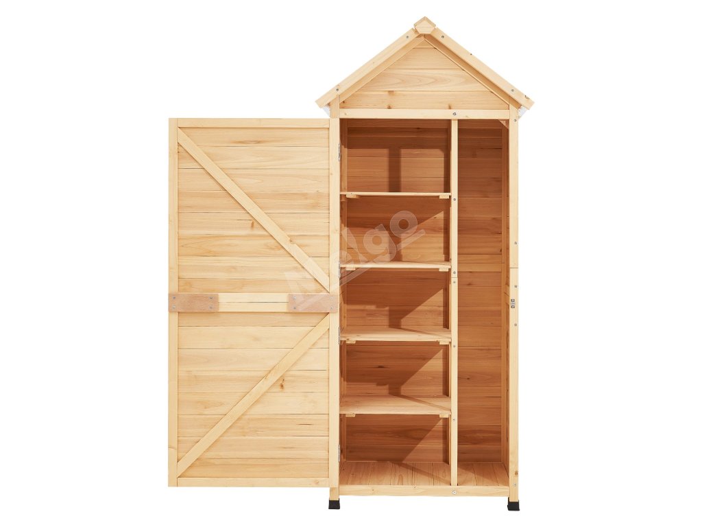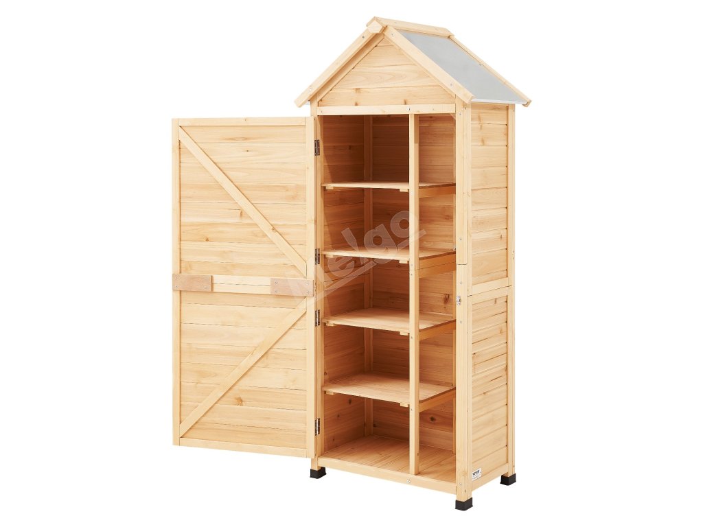 Skriňa s úložným domčekom má pevnú konštrukciu, ktorá zaručuje dlhodobé používanie a poskytuje vám spoľahlivé riešenie na uskladnenie.