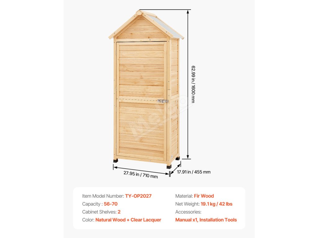 Drevený záhradný sklad s policami, zámkom, vodotesný 28×63 inch