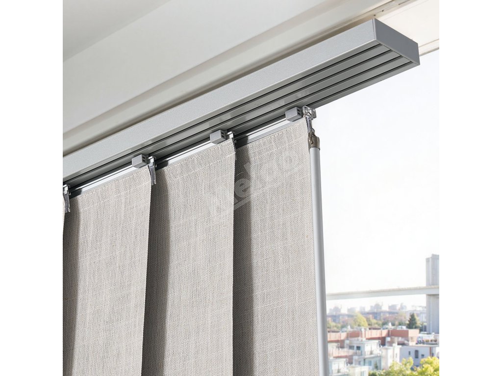 Vrchná záclonka skrýva koľajnicu, čím vytvára plynulý a elegantný vizuálny efekt, vhodný pre širokú škálu interiérových štýlov.