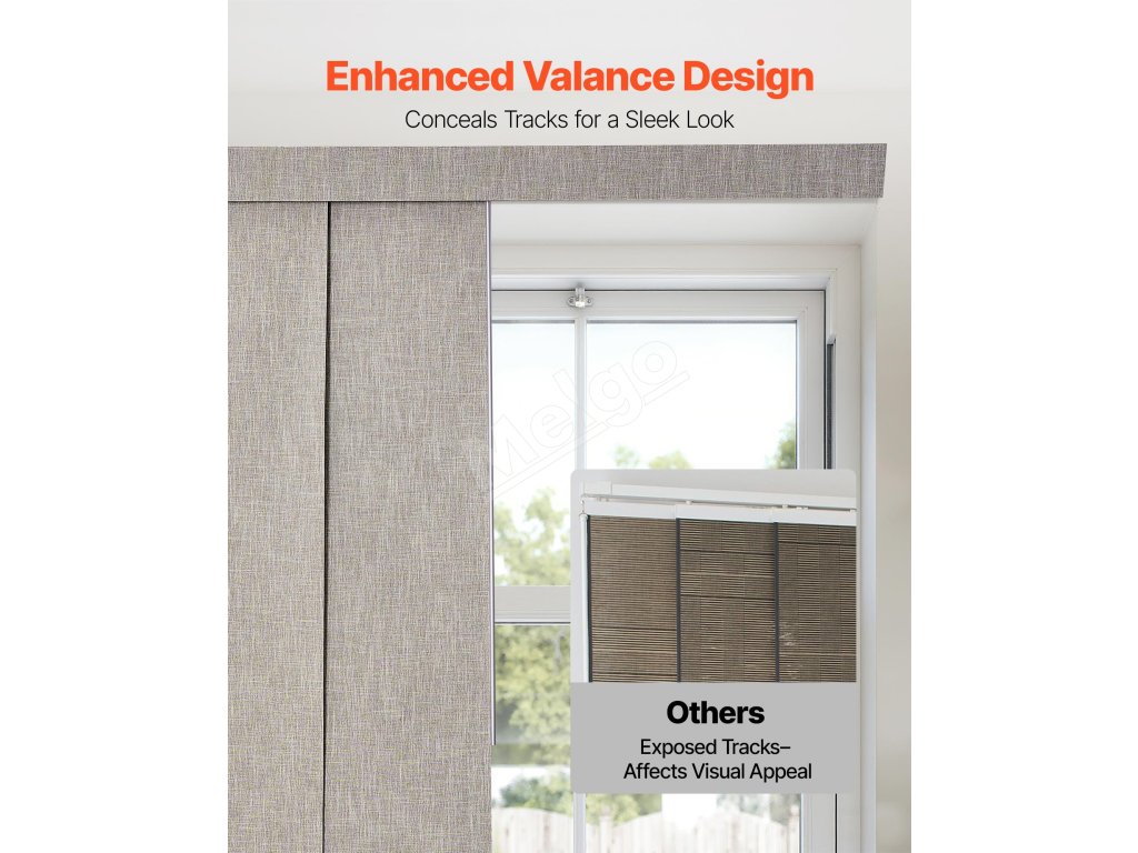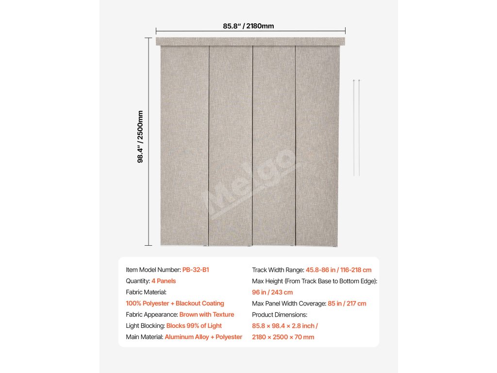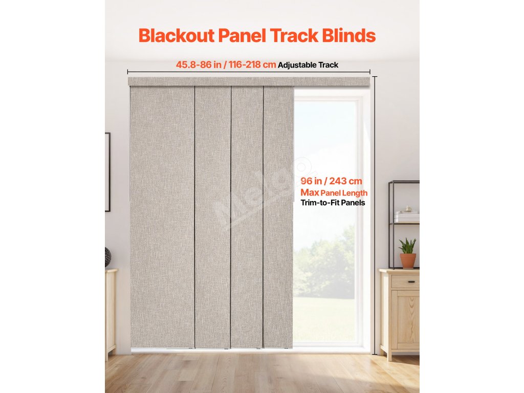 Tieto panelové žalúzie vyrobené z odolnej polyesterovej tkaniny so zatemňujúcou vrstvou blokujú 99 % svetla a zabezpečujú súkromie. Vrchný volán elegantne zakrýva dráhu a vytvára elegantný vzhľad. Sú ideálne pre terasové dvere, veľké okná od podlahy až po strop a ďalšie, čím zabezpečujú štýl aj funkčnosť.