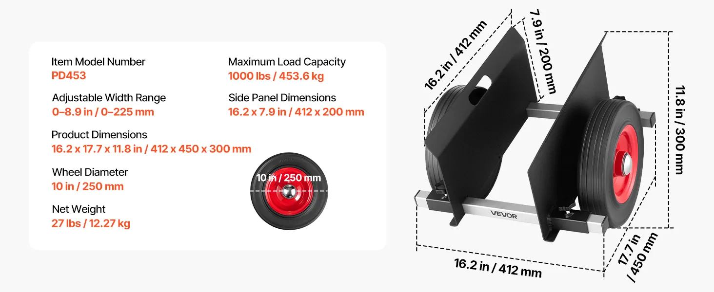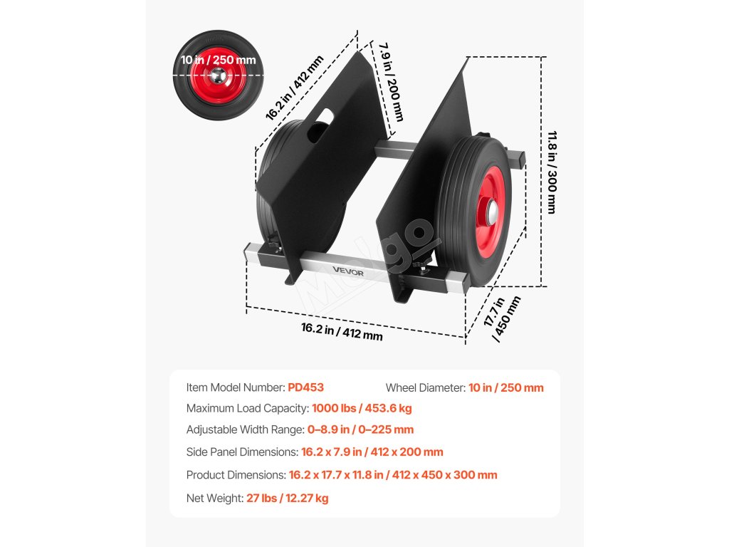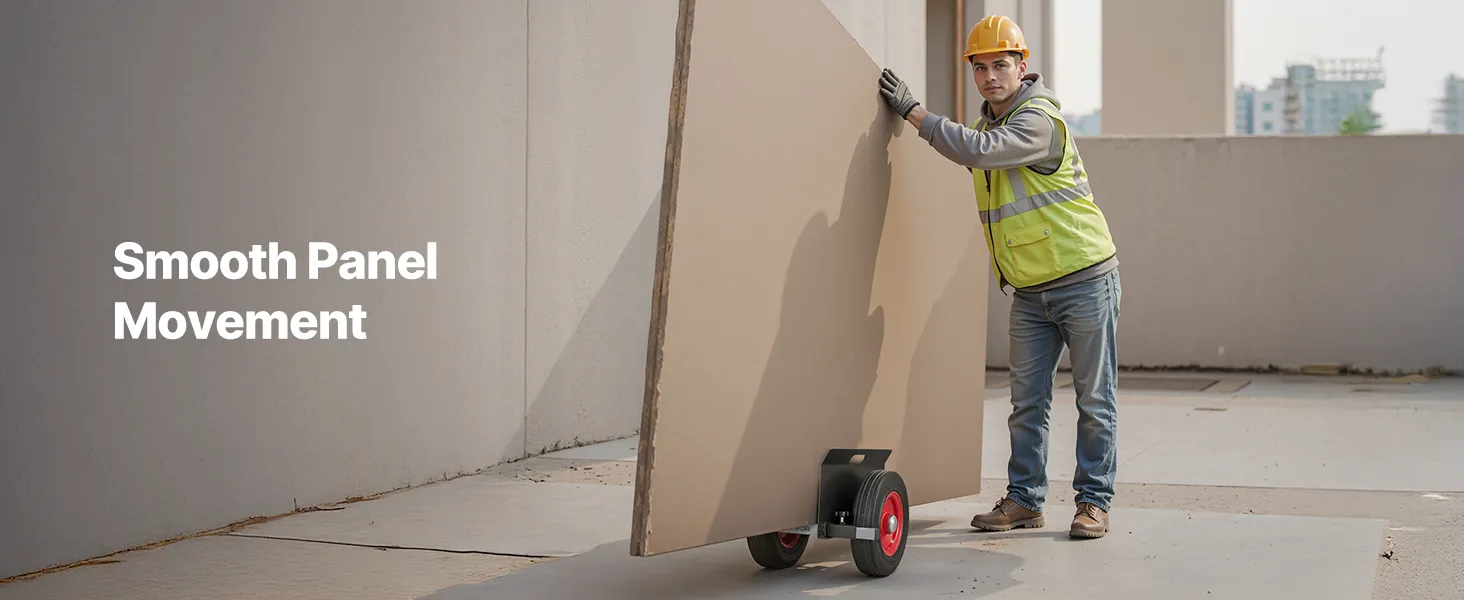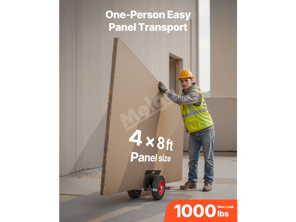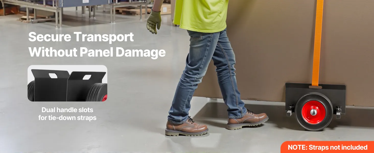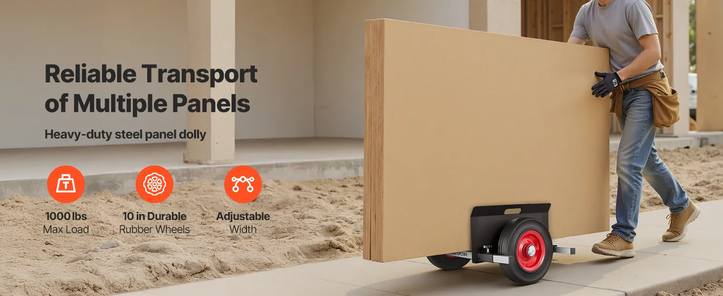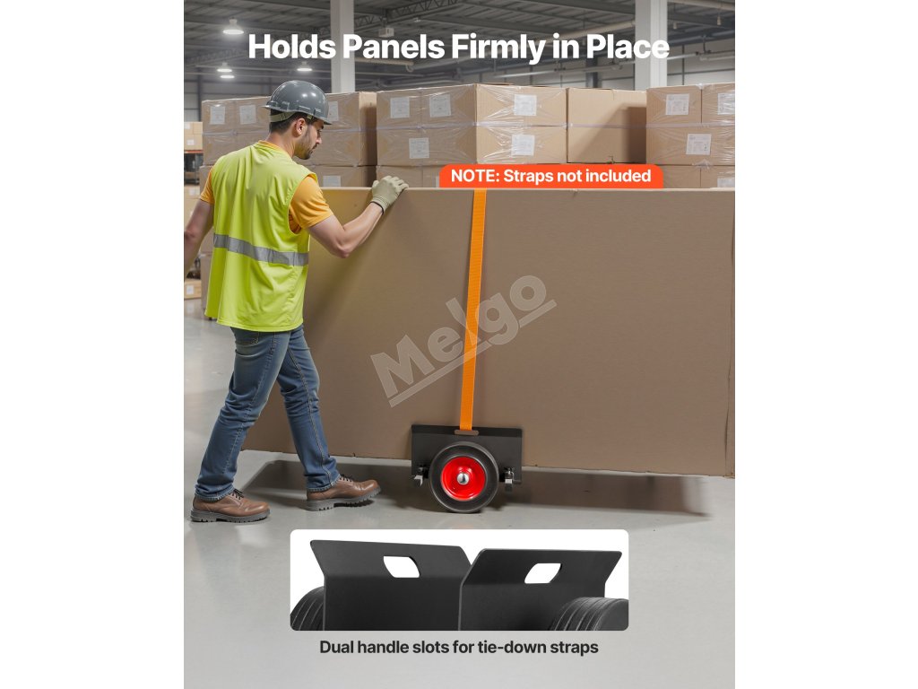 Tento ťažký oceľový vozík na prepravu panelov unesie až 1000 kg. Umožňuje jednoduchý presun viacerých panelov, čím šetrí prácu, zvyšuje efektivitu a zabezpečuje bezpečnú prepravu.