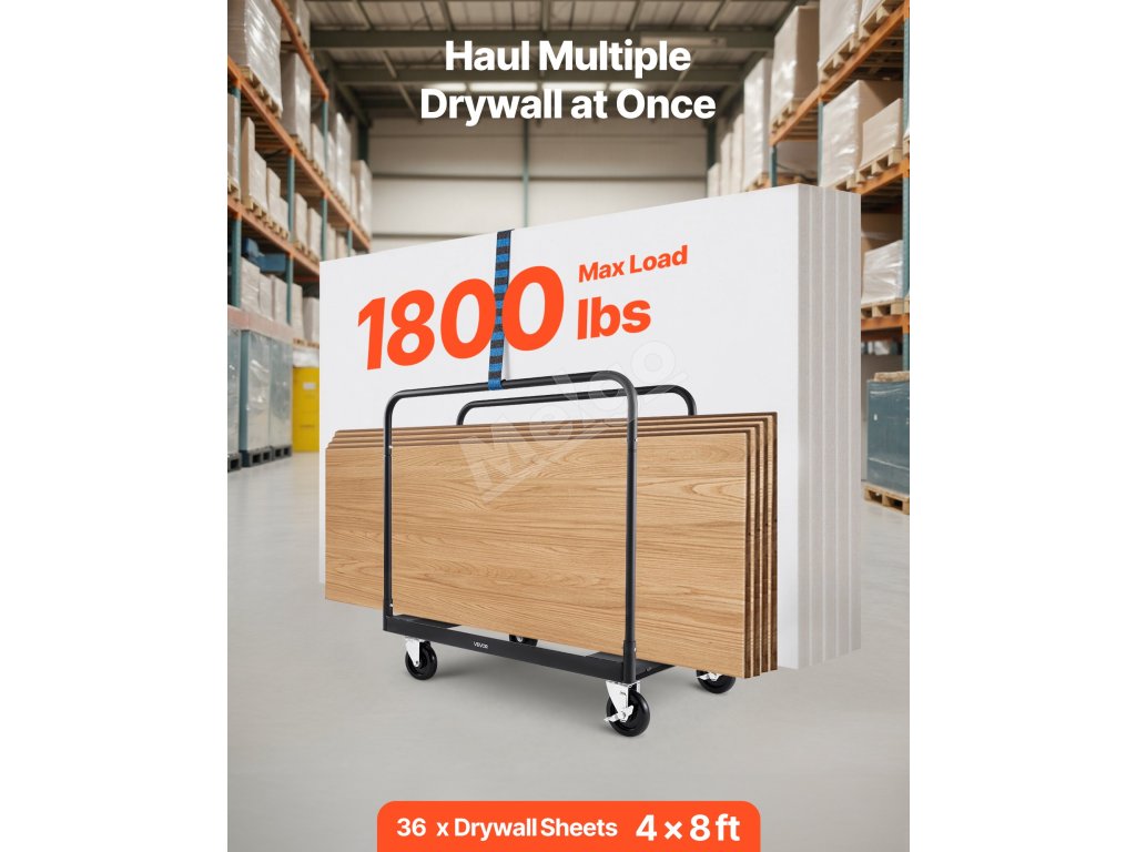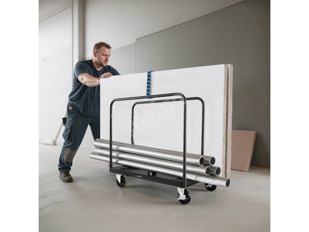 Vozík na sadrokartón, nosnosť 816 kg, 12,5 mm kolesá, 3 madlá, popruh