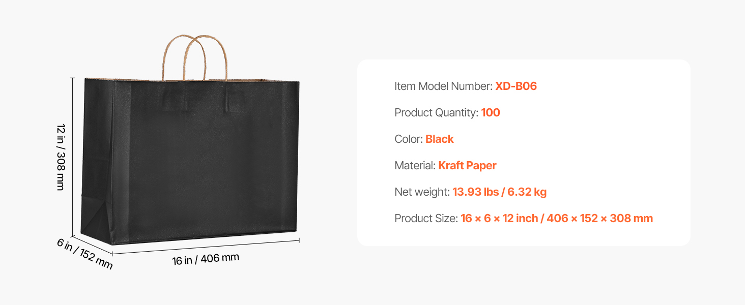 Papierové tašky s uchami, 100 ks, 16×6×12 in, čierne, 100% recyklované
