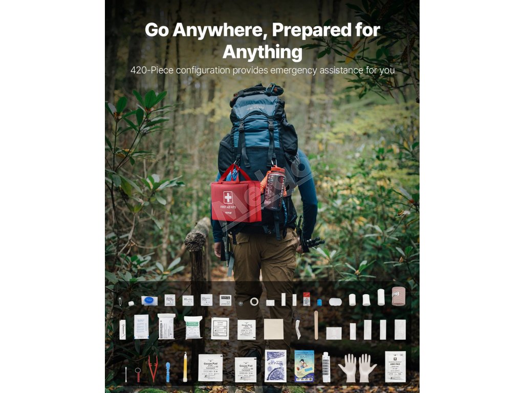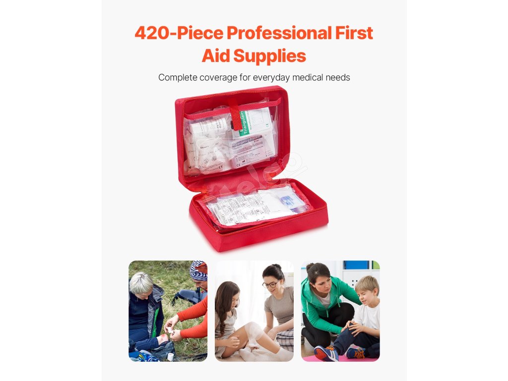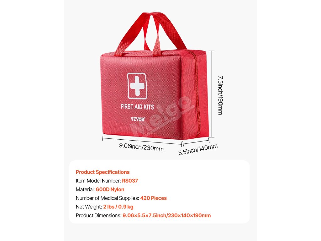 Naša pohotovostná lekárnička je vyrobená z odolného nylonu a je odolná voči opotrebovaniu, aby udržala vaše zdravotnícke potreby v bezpečí za akýchkoľvek podmienok. Viacero priehradiek efektívne organizuje 420 položiek prvej pomoci pre ľahký prístup. Je testovaná podľa vysokých zdravotných noriem a je ideálna na dobrodružstvá v prírode, cestovanie alebo každodenné používanie.