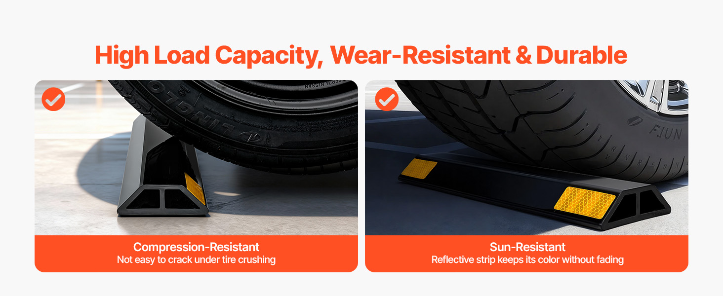 Parkovací obrubník je skonštruovaný so silnou nosnosťou, vďaka čomu vydrží drvenie pneumatík bez prasknutia. Konštrukcia odolná voči slnečnému žiareniu udržiava farbu reflexných pásikov dlhodobo jasnú.