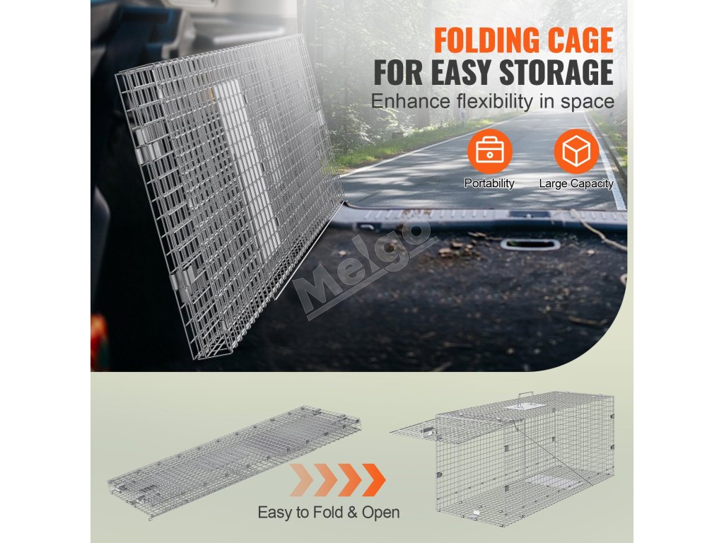 Táto živá pasca sa dodáva zmontovaná a pripravená na použitie. Stačí pripojiť mechanizmus pasce a všetko je pripravené na odchyt. Zväčšená rukoväť uľahčuje premiestňovanie klietky a jej skladacia konštrukcia umožňuje pohodlné a priestorovo úsporné skladovanie, keď sa nepoužíva.