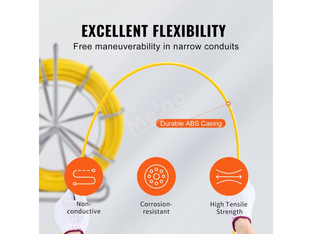 Drôt zo sklolaminátovej rybárskej pásky je na povrchu chránený hrubou vrstvou ABS, ktorá poskytuje vynikajúcu trvanlivosť a odolnosť voči drsnému prostrediu.