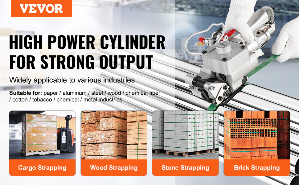 Na rozdiel od tradičných elektrických alebo ručných strojov pracuje náš pneumatický páskovač bez zdroja energie, takže je ideálny na rôzne aplikácie. Je ideálny pre priemyselné odvetvia, ako je papier, hliník, oceľ, drevo, chemikálie a kovové výrobky, a prispôsobuje sa rôznym potrebám balenia.