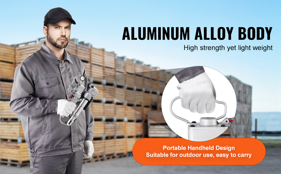 Toto prenosné pneumatické olepovacie náradie vyrobené z vysokokvalitnej hliníkovej zliatiny je ľahké a zároveň odolné. Jeho kompaktná konštrukcia uľahčuje prepravu a údržbu a zaručuje spoľahlivý výkon aj pri dlhodobom používaní vonku.
