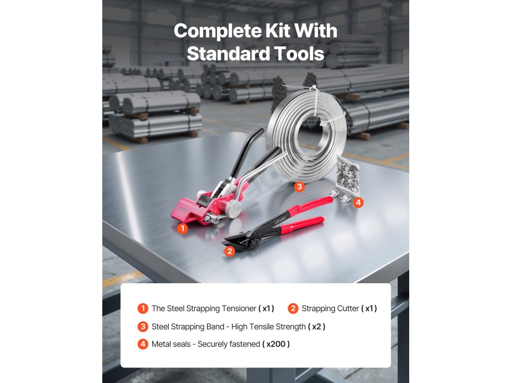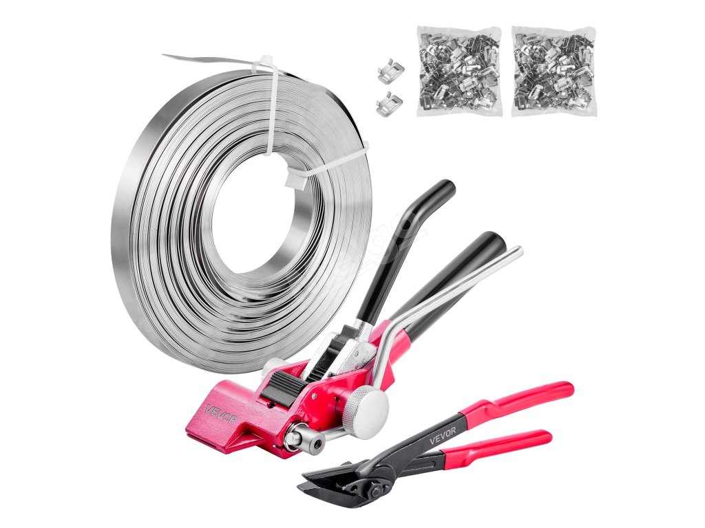 Sada na páskovanie oceľou 60 m pásky, 200 kovových spon ručný zatvárač