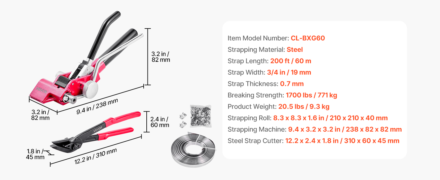 Náš napínač oceľových pásov integruje funkcie napínania a rezania pásov. Je vhodný pre rôzne špecifikácie nerezových pásov so šírkou 3/4 palca/19 mm a hrúbkou 0,7 mm, s ťahovou silou až 1700 libier/771 kg.