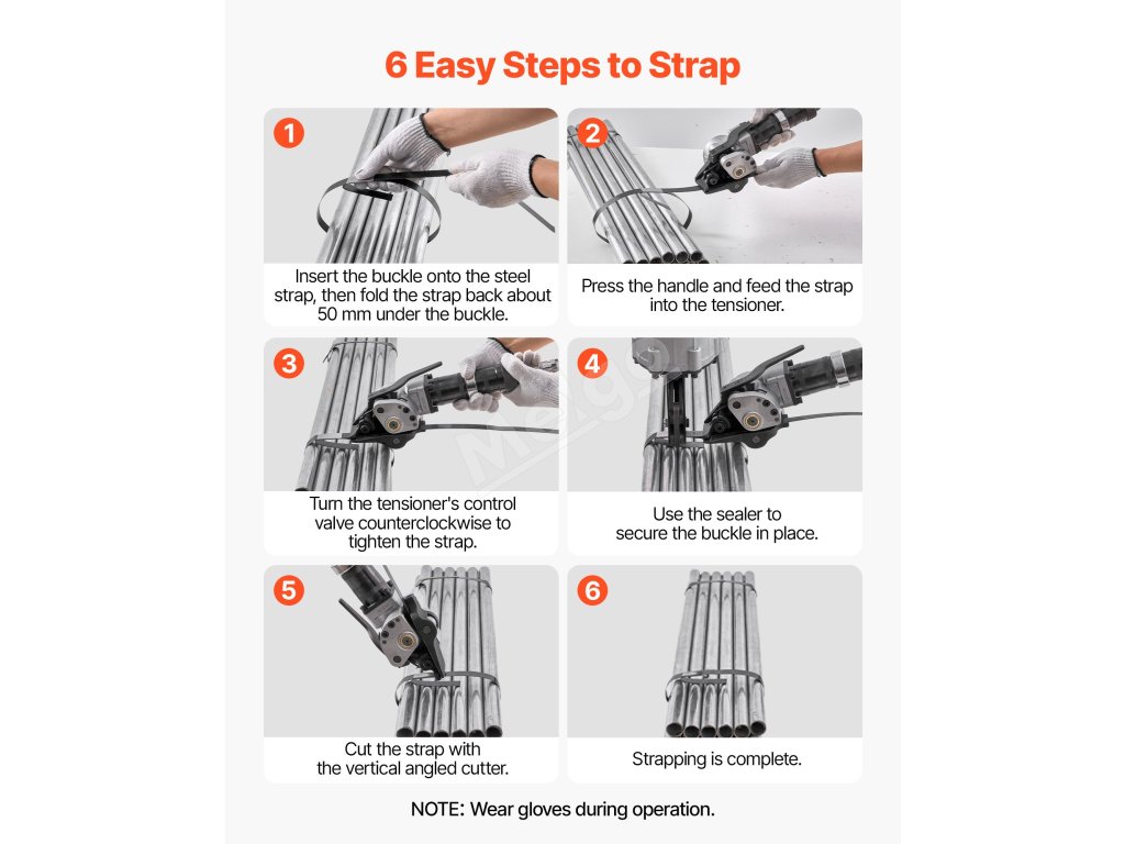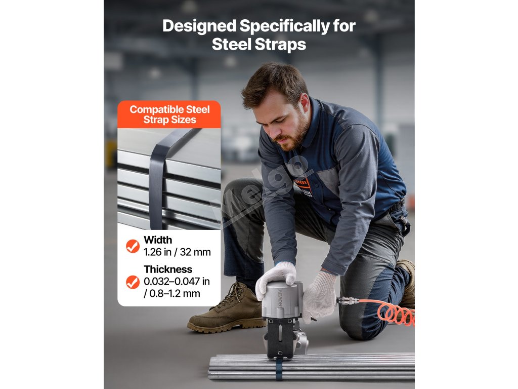 Tento pneumatický stroj na viazanie oceľových pások je určený na viazanie oceľových pások s deleným napínačom a tesnením. Konštrukcia ponúka flexibilné použitie a podporuje aj tímovú prácu dvoch osôb.