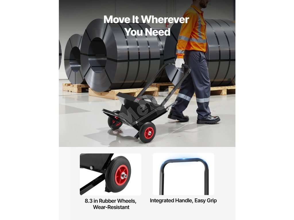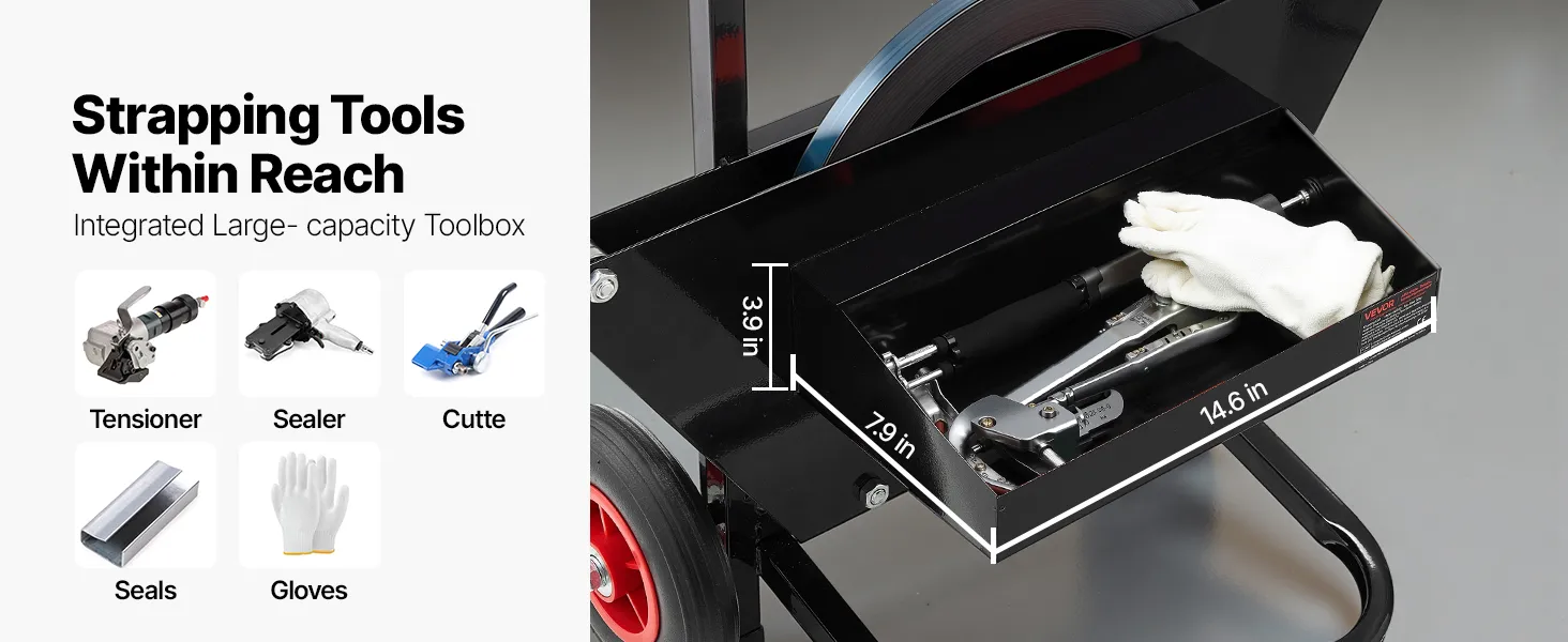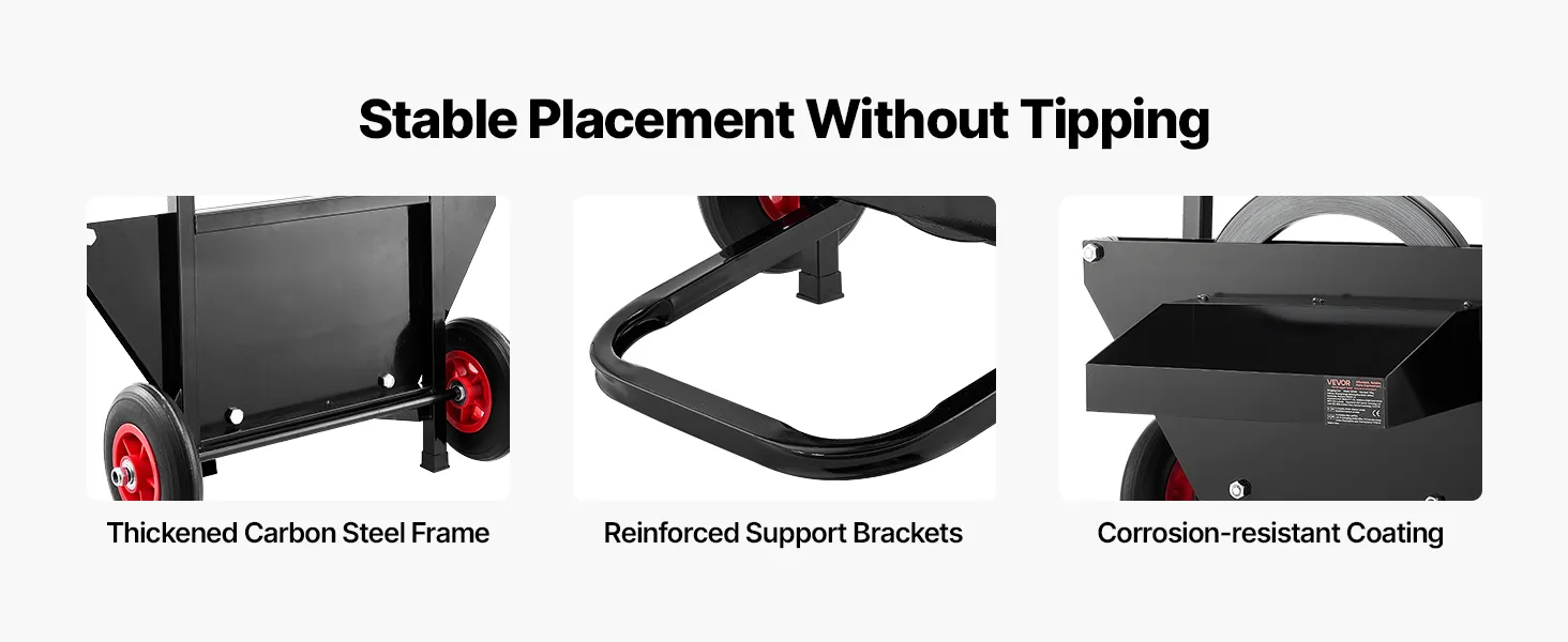 Vybavený 8,3 palcovými gumenými kolesami na jednoduchý presun na ľubovoľné miesto, čo znižuje námahu a zvyšuje účinnosť páskovania.