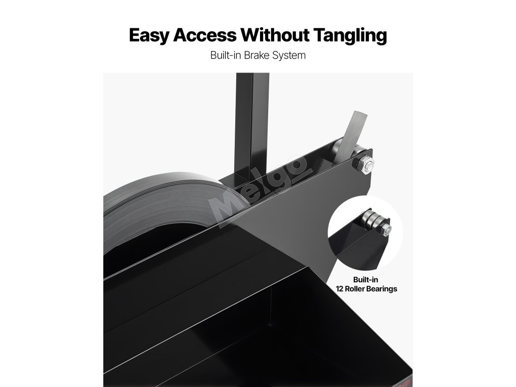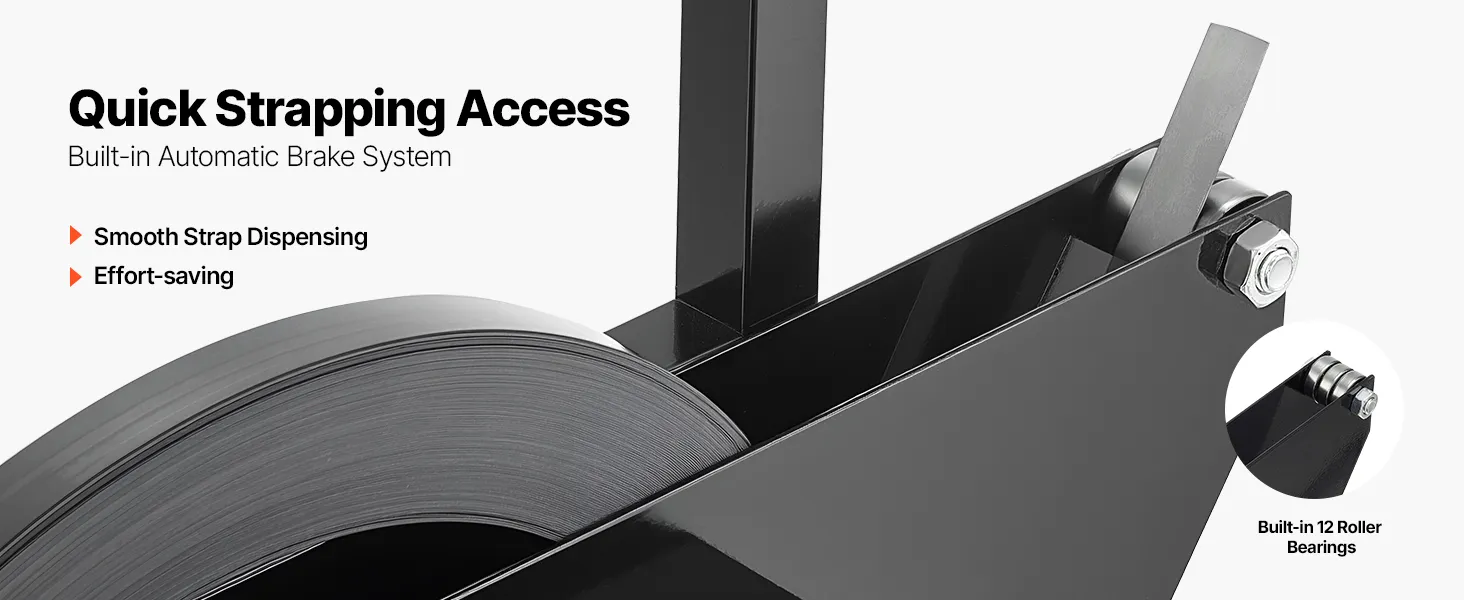 Vybavený 12 zabudovanými kovovými guličkovými ložiskami na ľahké ťahanie ťažkých kovových pások, čo znižuje námahu a zlepšuje účinnosť páskovania.