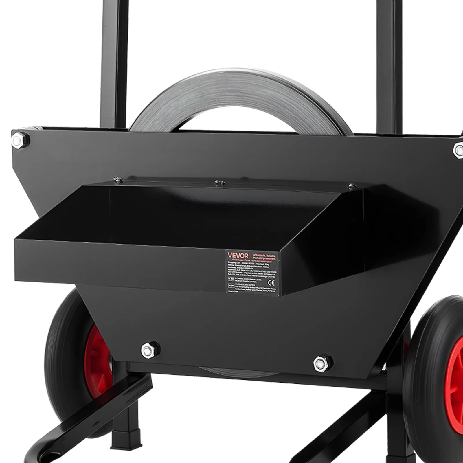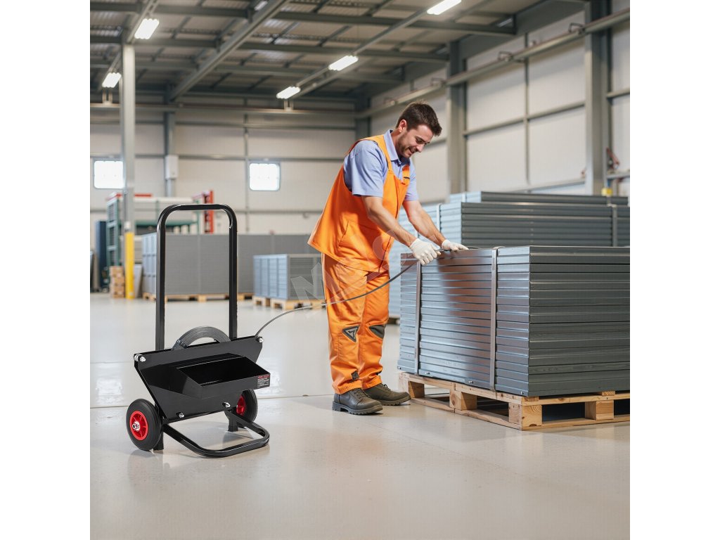 Páskovací vozík je vyrobený z vysokopevnostnej uhlíkovej ocele s povrchovou úpravou odolnou proti korózii. Je odolný proti opotrebovaniu, trvácny a zachováva si tvar v rôznych prostrediach.