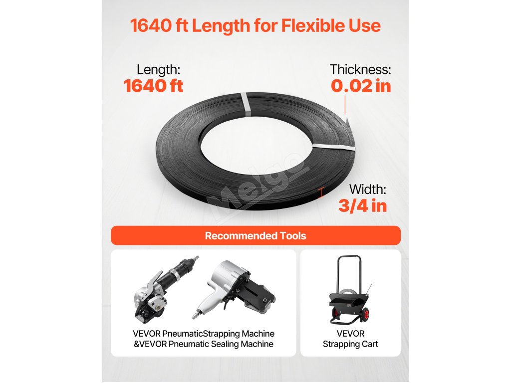 Oceľový pás na balenie cievka 1640'×3/4"×0.02" čierny, 1700 lbs