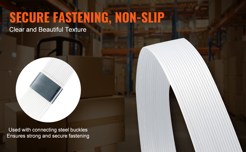 Reliéfny povrch našej páskovacej rolky zvyšuje priľnavosť a znižuje sklz. V spojení s oceľovými sponami umožňuje viacnásobné uťahovanie, čím zabezpečuje, že vaše obaly zostanú bezpečne upevnené.