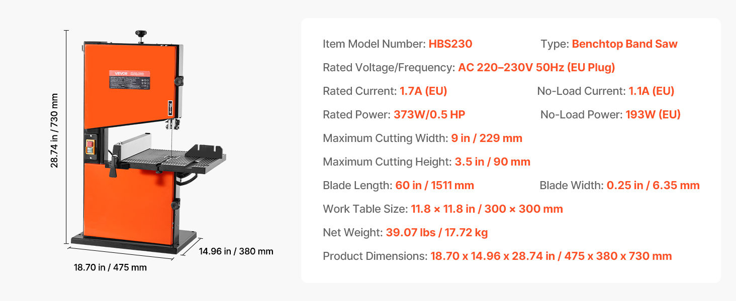 9-palcová stolová pásová píla 1/2 HP na spracovanie dreva