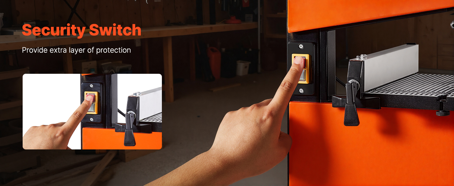 Systém dvojitého bezpečnostného spínača pomáha zabrániť náhodnému spusteniu spôsobenému nárazmi, prepätím alebo vonkajším rušením. Naša stolová pásová píla vám poskytne pokojné pracovné prostredie.